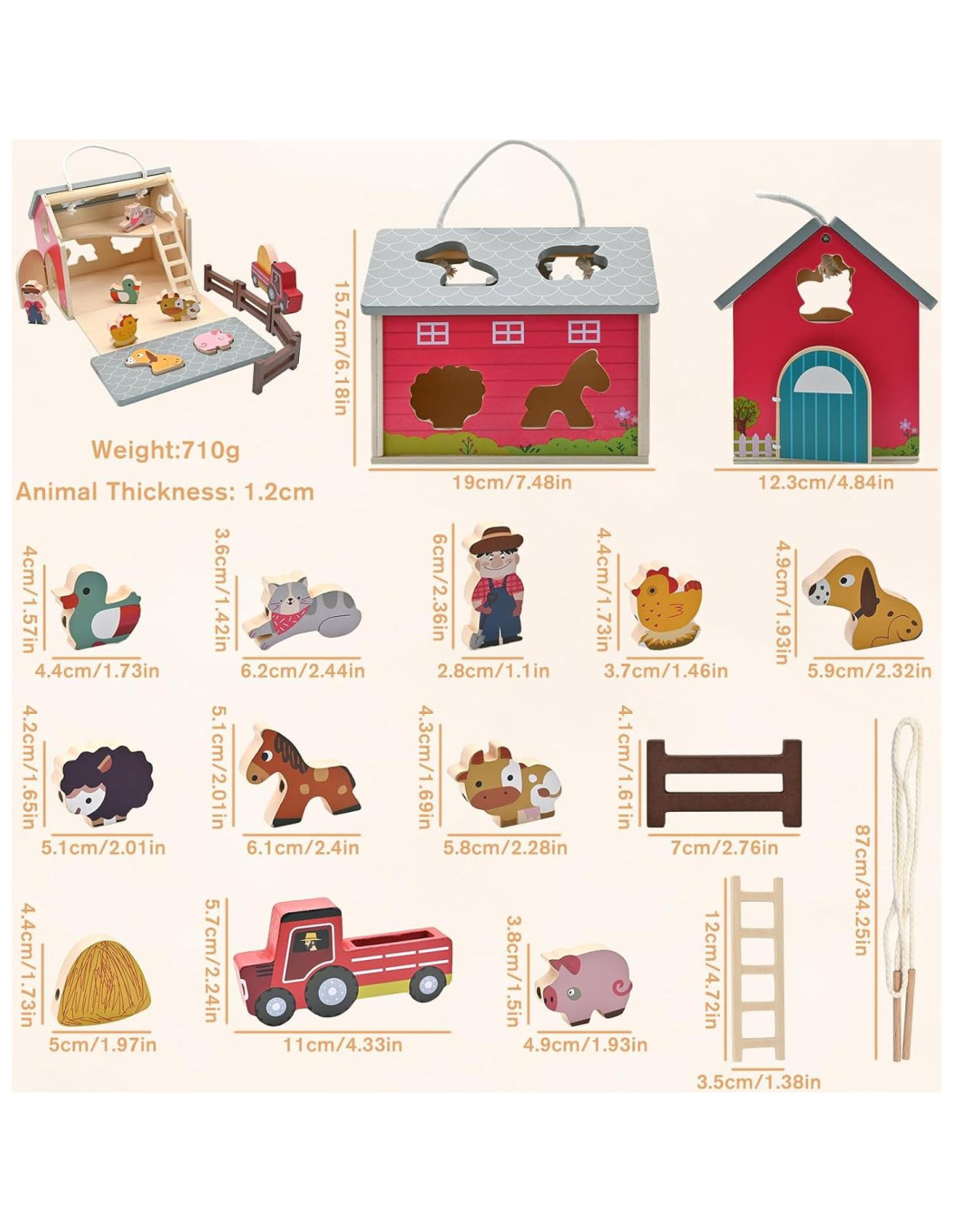 - Fácil Almacenamiento y Amigable para Viajar: Todos los juguetes de animales de granja para niños se pueden almacenar dentro del granero. Con un práctico asa de cuerda, este conjunto es perfecto tanto para uso en interiores como exteriores, así como para entretenimiento en movimiento.