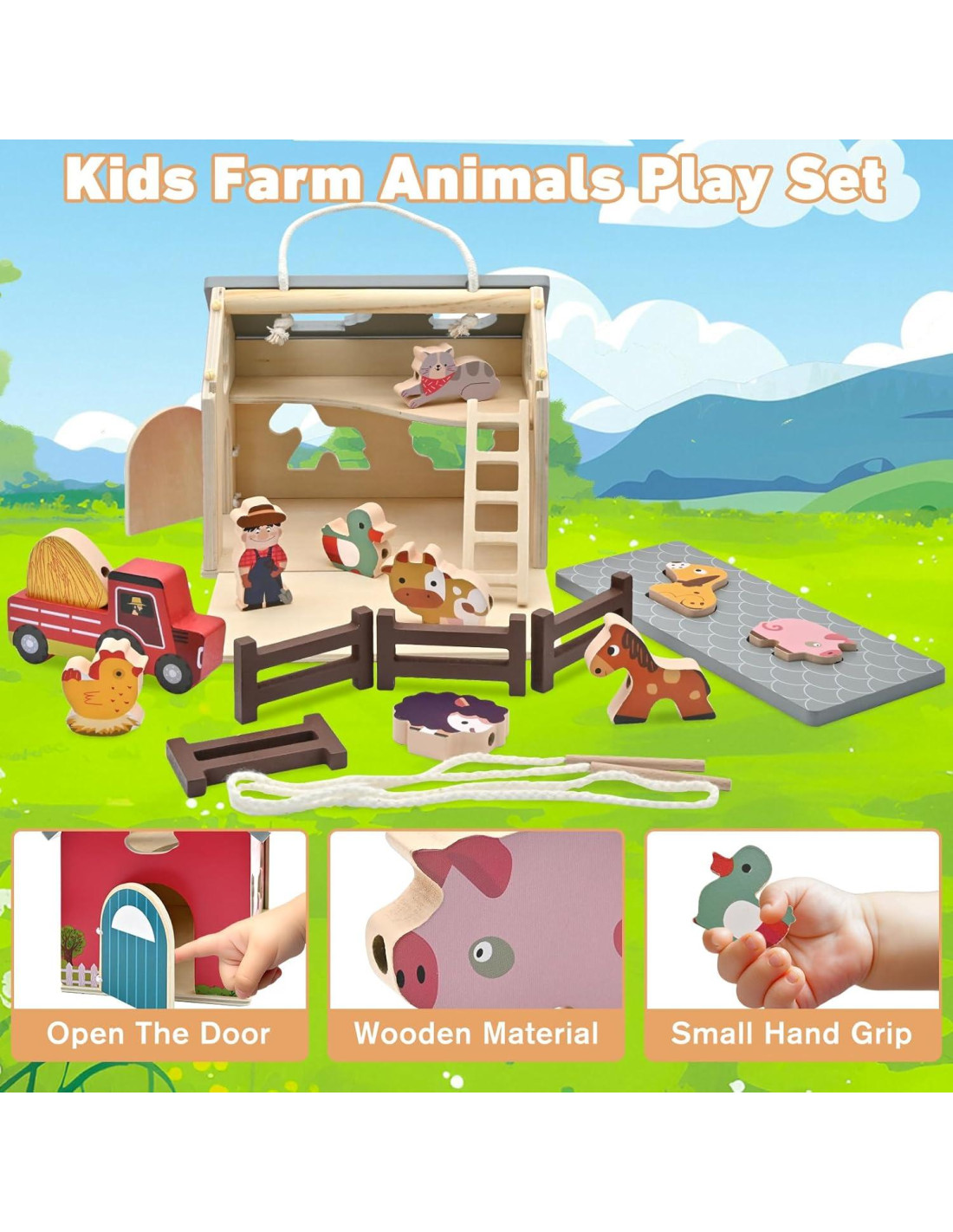 - Juguetes de Granero Completos para Niños Pequeños: Este juego portátil incluye un granero de madera, 8 juguetes de animales de granja, un granjero, un camión, una paca de paja, una escalera, una cuerda y 4 cercas, ofreciendo interminables juegos de granero y aventuras creativas para los niños.