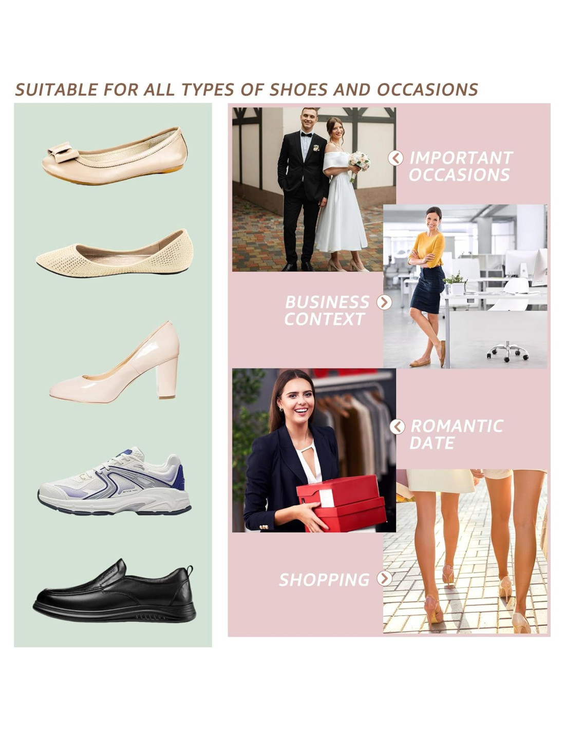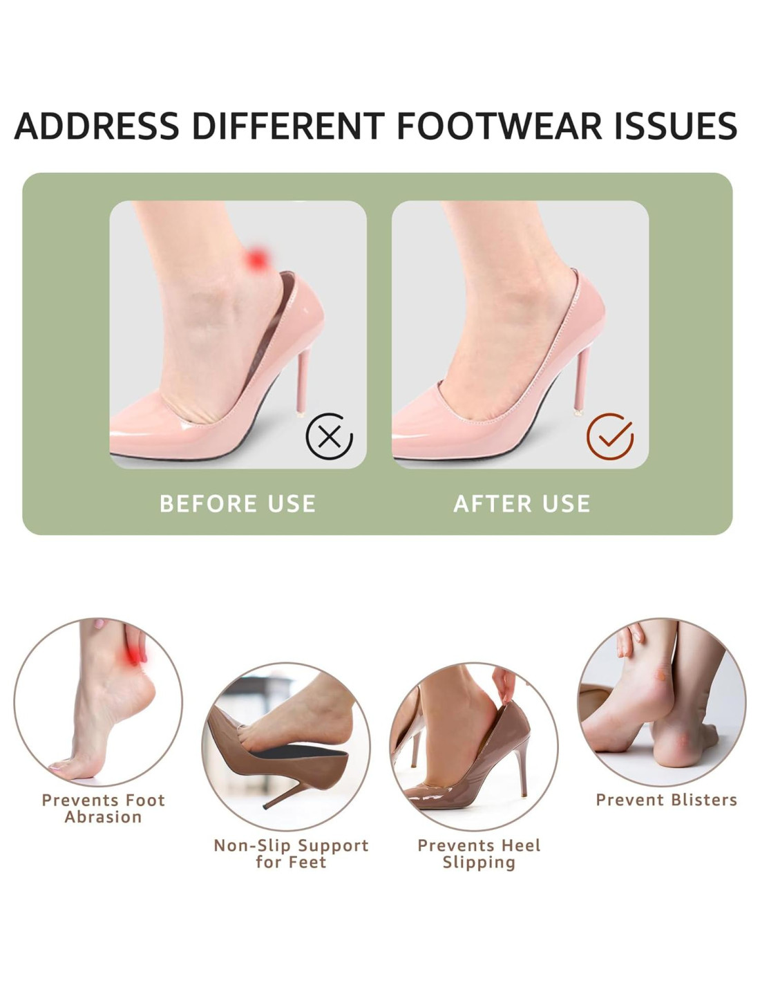 - Fácil de Usar y Ajuste Universal: Simplemente despega y pega las almohadillas para el talón en la parte trasera de tus zapatos para una comodidad instantánea. El diseño universal se adapta a la mayoría de los tipos de zapatos, incluyendo tacones altos, mocasines, botas y zapatos casuales, haciéndolos una adición versátil a tu colección de calzado.
