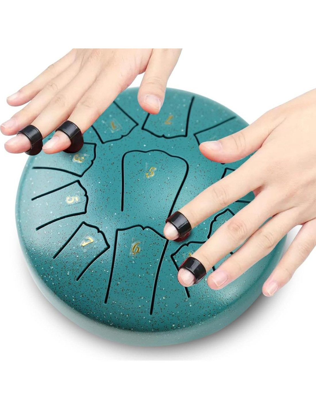 - Un conjunto Incluido un Tambor de Lengua de Acero-11 Notas 6 pulgadas (15,24 cm). un par de mazos de tambor, 4 picos para los dedos, libro de música, 2 pegatinas de tono y bolsa de almacenamiento.