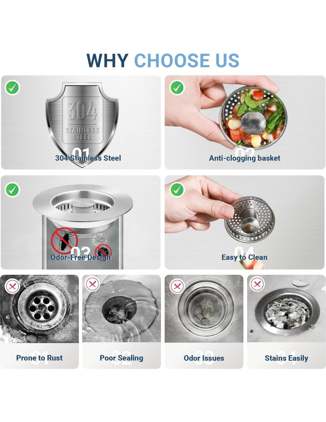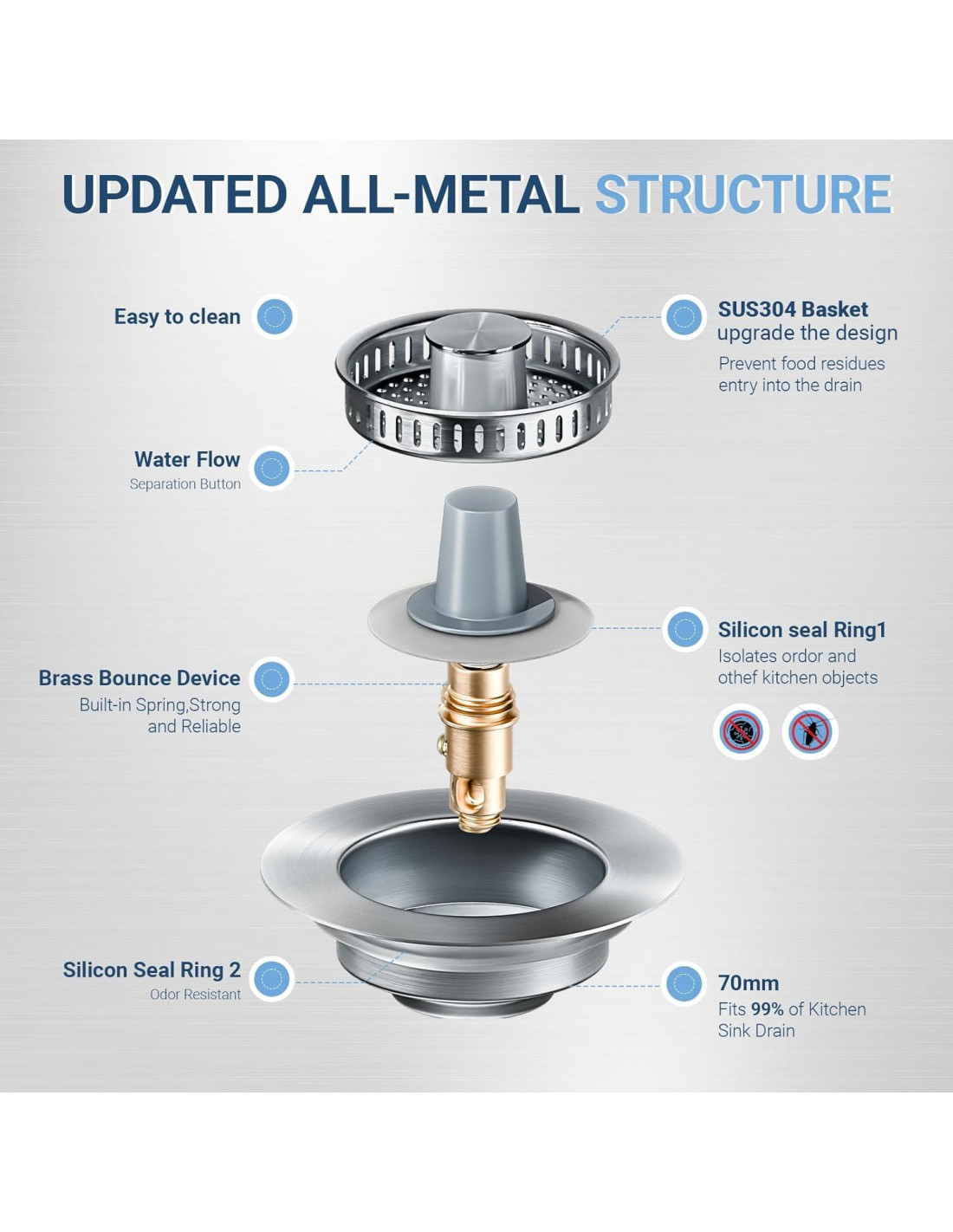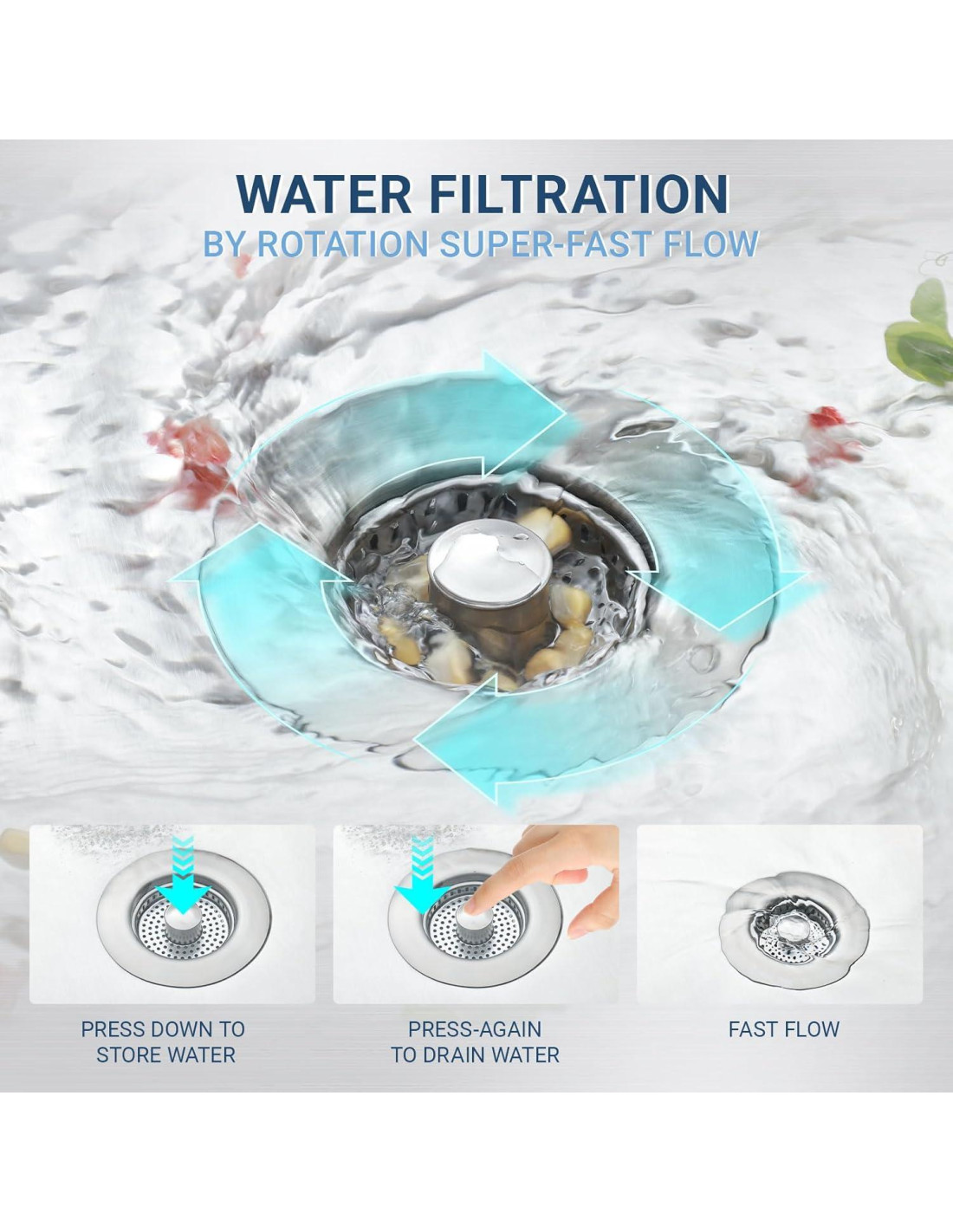 - ¡5X más rápido drenaje! El diseño anti-obstrucción de la cesta mantiene los agujeros despejados, haciendo que la eliminación de desechos del fregadero sea muy fácil mientras drena 5X más rápido. ¡Tu solución confiable para desagües bloqueados!