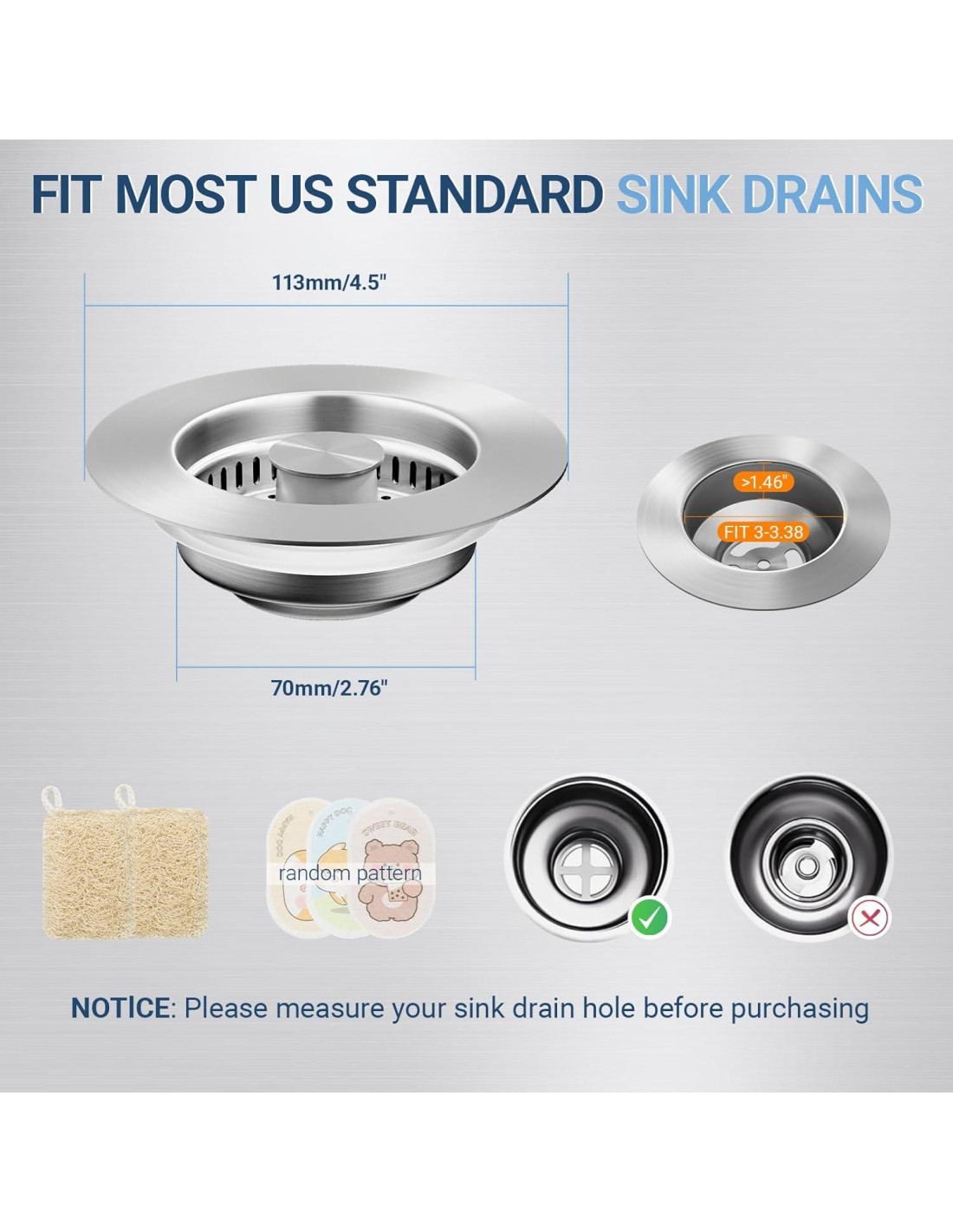 - Compatibilidad amplia: este tapón de fregadero está diseñado para adaptarse a la mayoría de los agujeros de desagüe estándar de EE. UU. de 3-1/2 pulgadas. Antes de comprar, simplemente mide el tamaño de tu agujero de desagüe para asegurar un ajuste perfecto.