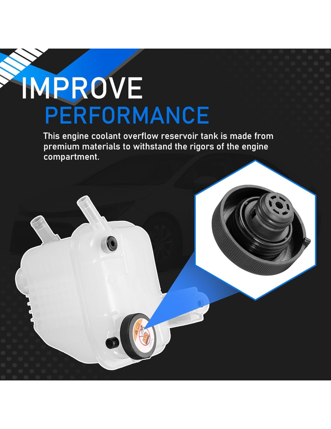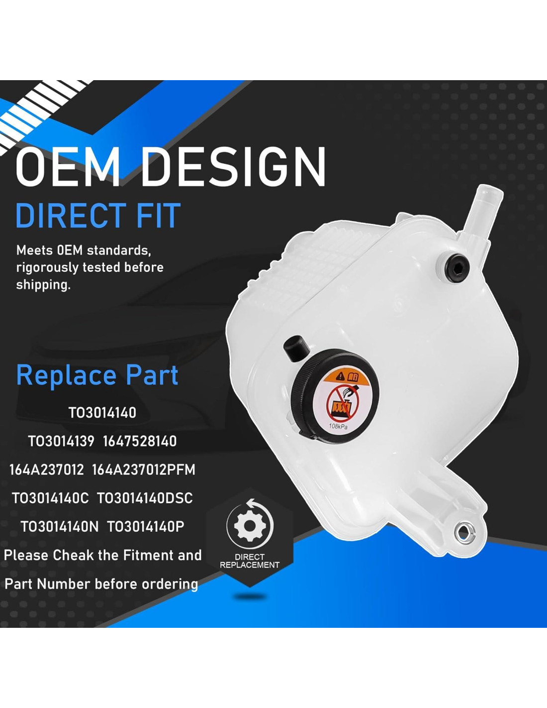 - [Paquete] 1 * Tanque de expansión de refrigerante del motor; 1 * Tapa. Por favor, examine nuestras fotos con gran cuidado para asegurarse de que la foto mostrada es exactamente lo que desea.