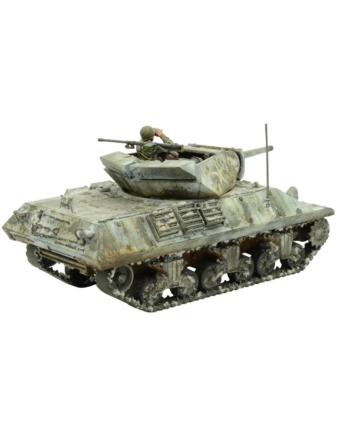 El cañón antitanque M7 de 3 pulgadas (76.2mm) del M10 fue una mejora considerable sobre el de 75mm que llevaba el Sherman. La relativamente delgada armadura de 37mm (y la torreta soldada de cinco lados y abierta) del M10, por otro lado, lo hacía vulnerable a las armas antitanque, por lo que su papel principal se volvió defensivo, a menudo disparando desde posiciones ocultas. El M10 también fue ampliamente utilizado por los británicos, que lo llamaron Wolverine. Como tal, este conjunto de plástico viene completo con la opción de tripulación estadounidense o británica, además de extensas hojas de calcomanías para equipar a tus cazadores de tanques para la acción. Este producto se suministra sin ensamblar y sin pintar. Pegamento y pinturas no incluidas.