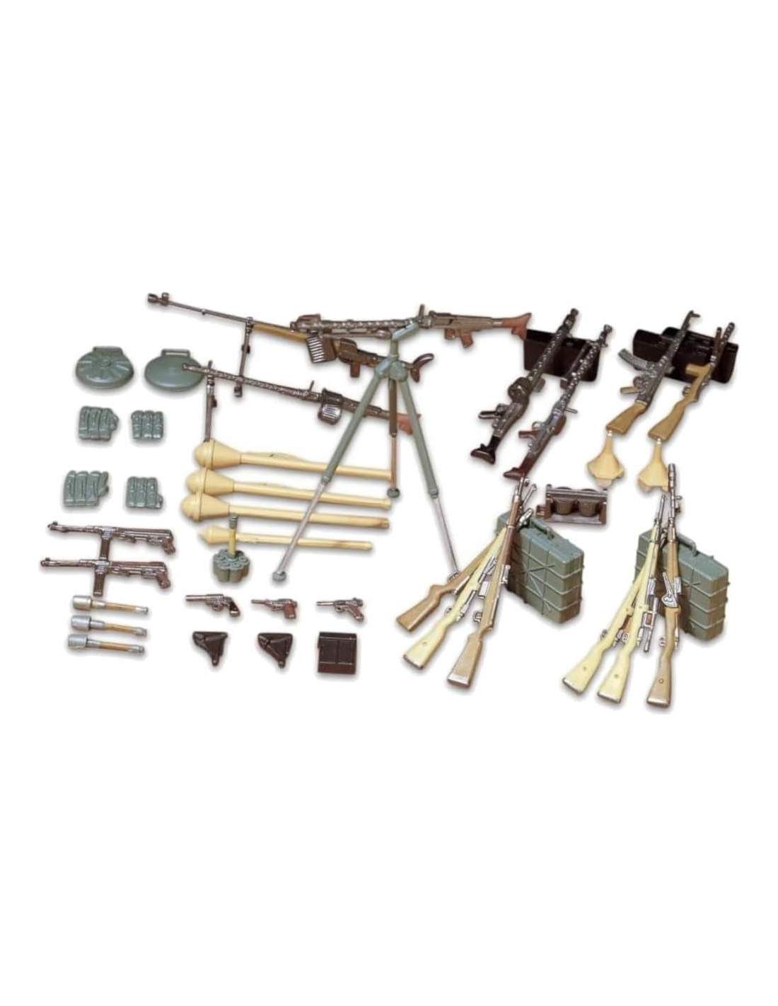 Este conjunto contiene la MG 34, MG 42, Proyector Antitanque de Infantería Pequeño, Proyector Antitanque de Infantería 30, Proyector Antitanque de Infantería 60, Granada de Mango M24, Carga de Granada de Mango Multicabeza, Mina Antitanque de Carga Hueca Magnética, Rifle Antitanque Pz B. 39, Luger P-08, Walther P-38, Rifle de Asalto MP 44, Rifle K98, Rifle de Francotirador K98, Rifle K98 con Lanzagranadas de Tipo Taza, Pistolametralladora MP 40, Submetralleta M35, Submetralleta EMP, y mucho más.