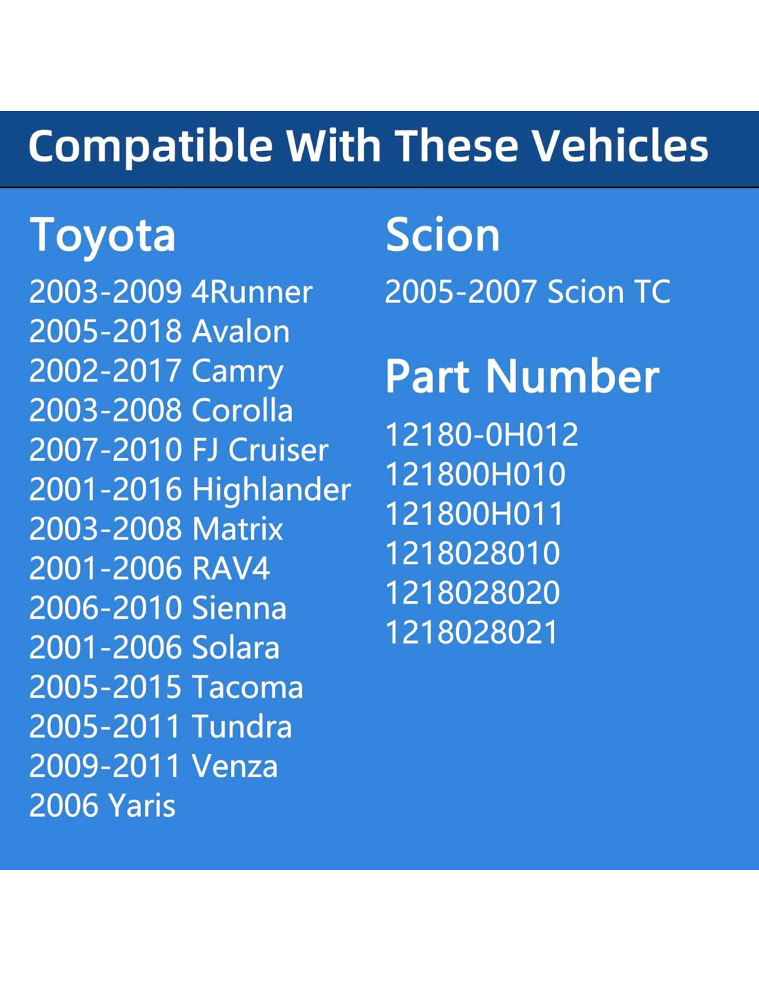 - [COMPATIBLE CON TOYOTA Y SCION] Tapa de Llenado de Aceite de Motor compatible con Toyota 2003-2009 4Runner | 2005-2018 Avalon | 2002-2017 Camry | 2003-2008 Corolla | 2007-2010 FJ Cruiser | 2001-2016 Highlander | 2003-2008 Matrix | 2001-2006 RAV4 | 2006-2010 Sienna | 2001-2006 Solara | 2005-2015 Tacoma | 2005-2011 Tundra | 2009-2011 Venza | 2006 Yaris | 2005-2007 Scion TC