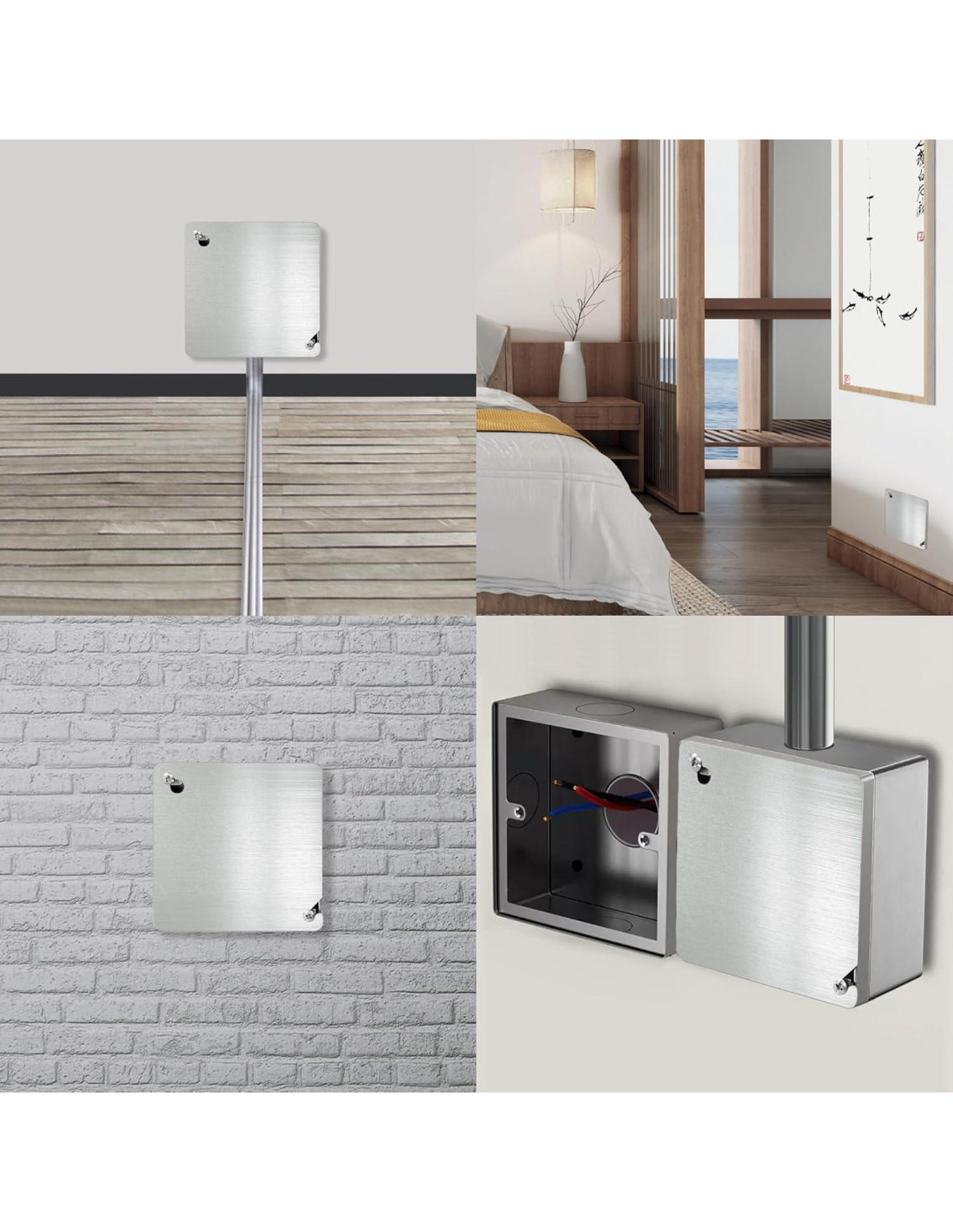 - [Fácil de instalar] La placa de cubierta de la caja eléctrica se puede adjuntar fácilmente a la caja de salida, con ranuras de montaje anguladas para complementar la caja con 12 grados de desalineación, y la cubierta de caja eléctrica de metal puede cerrar muy bien la caja de salida para prevenir electrocuciones accidentales.