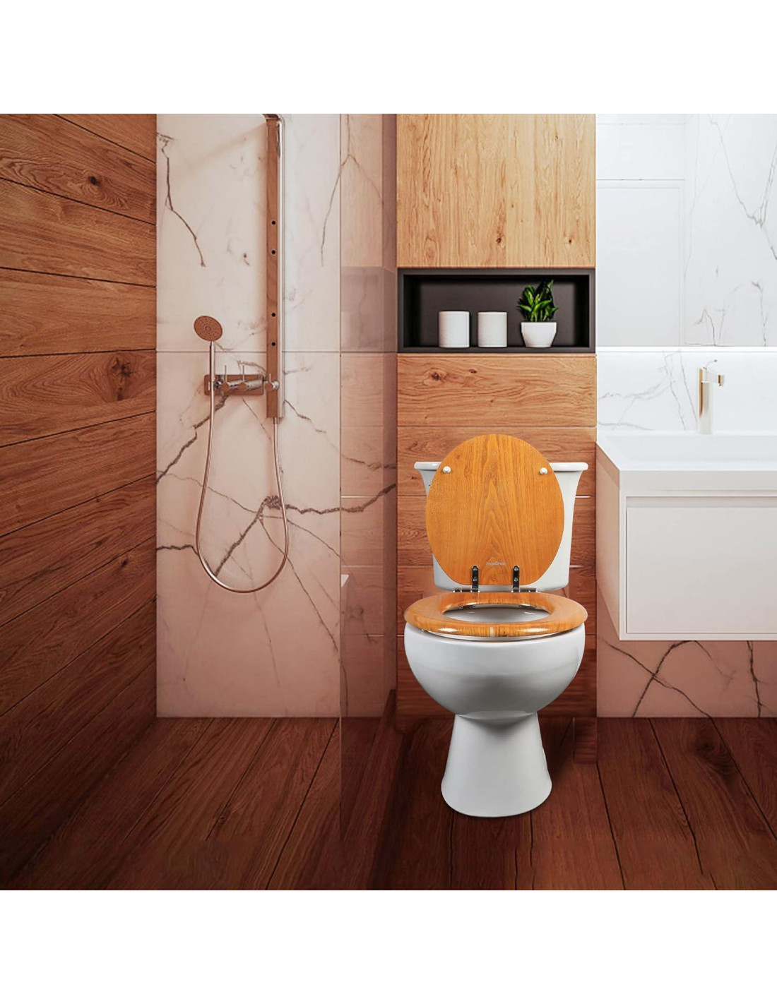 - [LUGAR APLICABLE] La tapa de inodoro de madera retro y ecológica puede combinarse con tus muebles y la decoración de tu habitación.