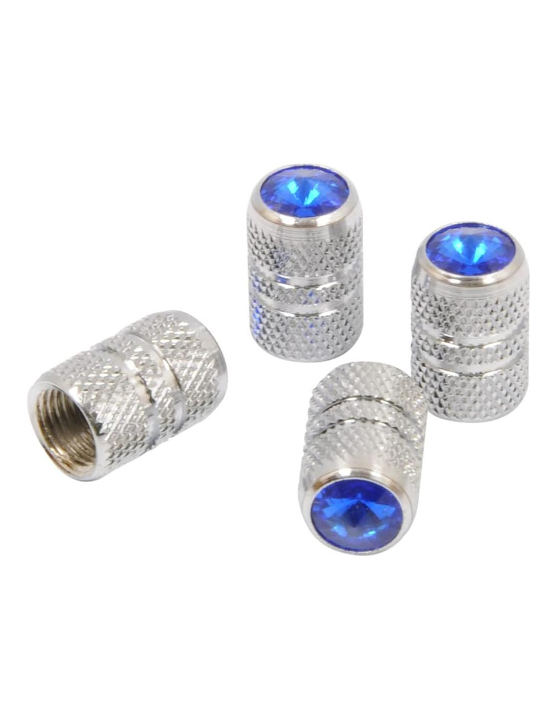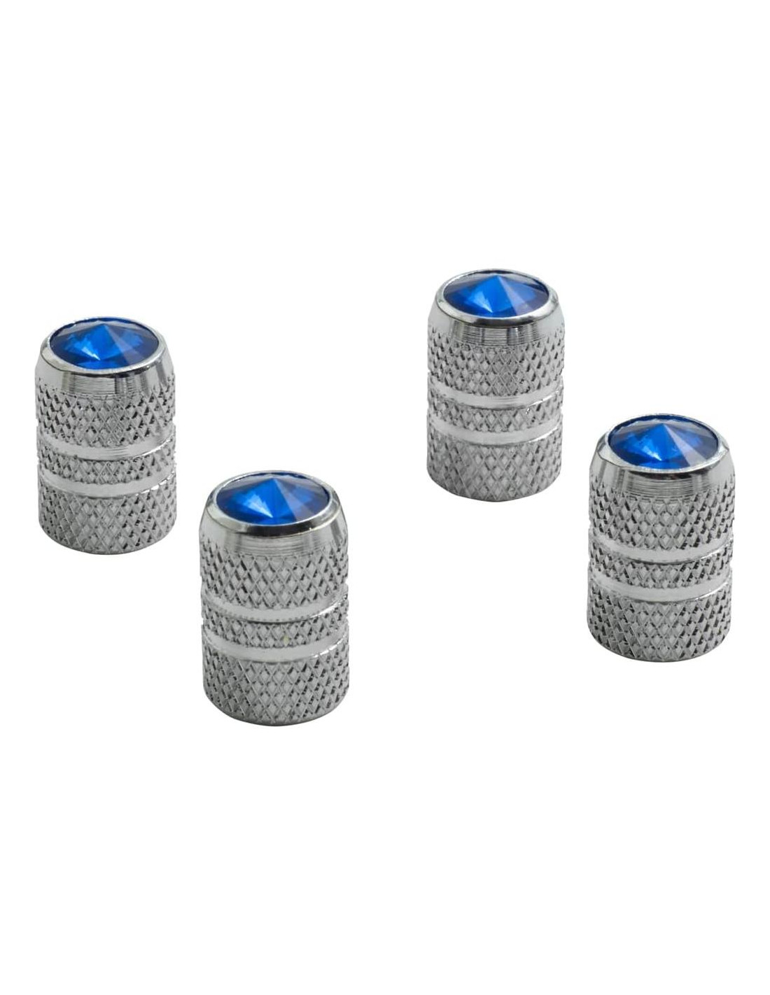 Estas tapas de válvula con una punta de color azul tienen un acabado cromado y se atornillan fácilmente en los vástagos de las válvulas. Vienen 4 en un paquete.