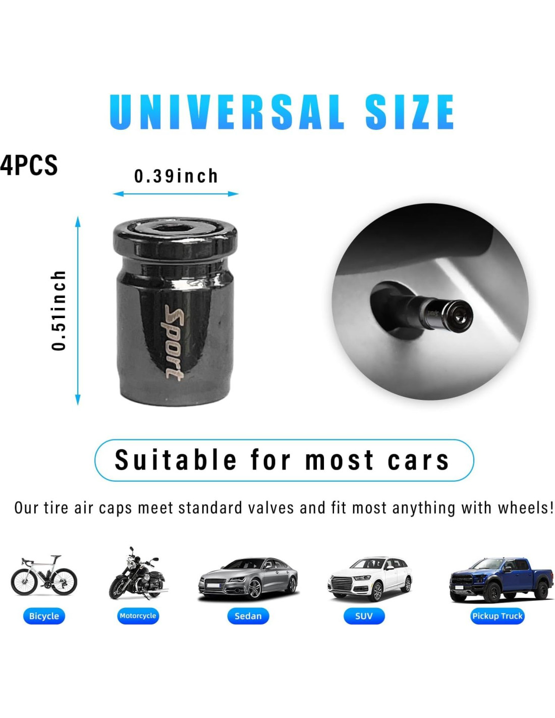 - Buena Compatibilidad: El paquete incluye 4 cubiertas de válvula para satisfacer sus necesidades de reemplazo diario. Estos tapones de válvula tienen un diámetro interno de 0.37 pulgadas (0.94 cm), un diámetro externo de 0.4 pulgadas (1.02 cm) y una altura de 0.5 pulgadas (1.27 cm). Las cubiertas de válvula de neumático universales son adecuadas para la mayoría de los coches, bicicletas, SUV, camiones y otros vehículos de motor.