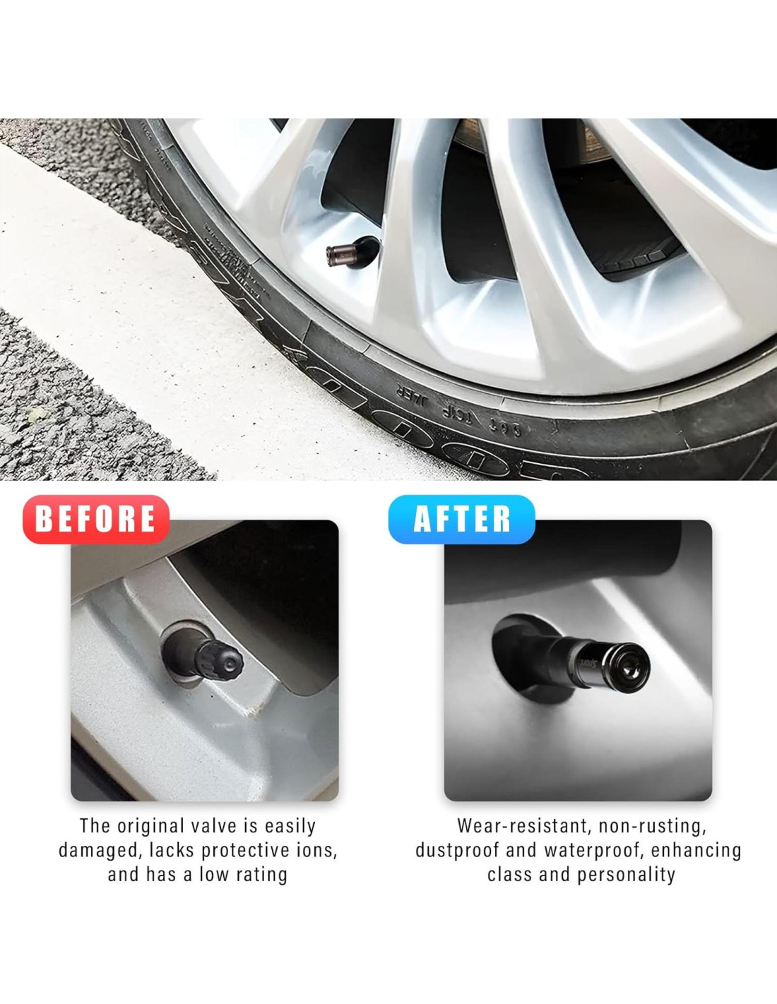 - Acero Inoxidable de Alta Calidad: El tapón de válvula está hecho de acero inoxidable de alta calidad. Tiene una fuerte resistencia a la corrosión y durabilidad en comparación con otros materiales, lo que previene eficazmente que su válvula se ensucie y se corroe. Más importante aún, no se oxidará incluso en un ambiente húmedo durante mucho tiempo, lo que garantiza la seguridad al conducir.