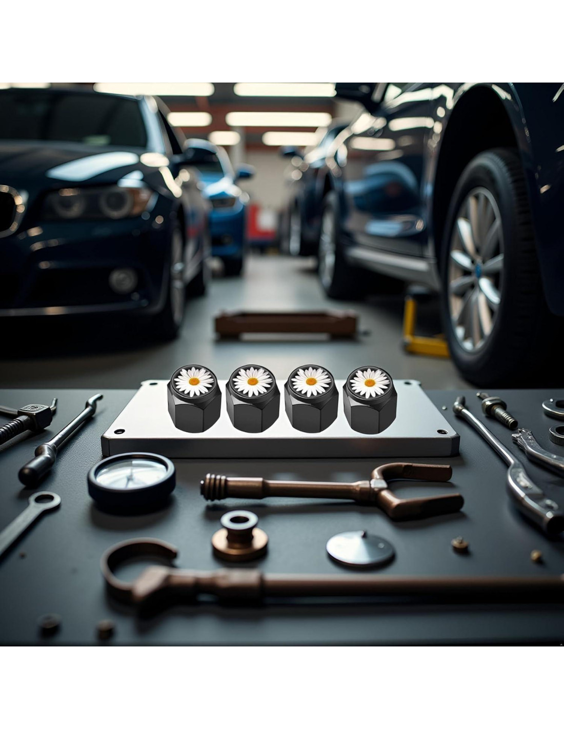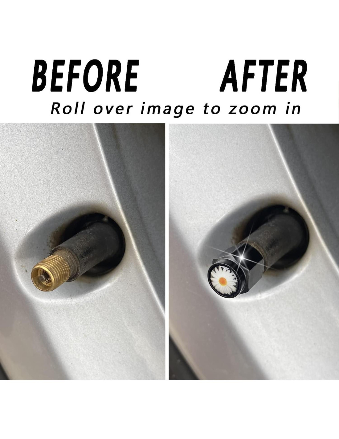 4 Pcs Tapa de Válvula de Neumático, Tapa de Válvula de Aire de Metal, Tapa de Válvula de Rueda de Aluminio para Automóviles, Camiones, Bicicletas, Motocicletas, Cubiertas Universales para Válvulas, Resistente a la Corrosión (Margarita Blanca)