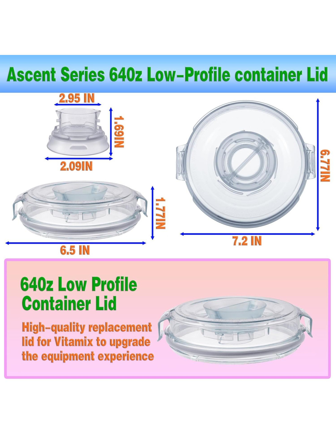- Especificaciones del Contenedor: Tapa clara de licuadora adecuada para el contenedor de perfil bajo de 64oz de la licuadora vitamix A series. Tapas compatibles con la jarra de 64oz de vitamix no compatibles con los contenedores de 48oz de vitamix