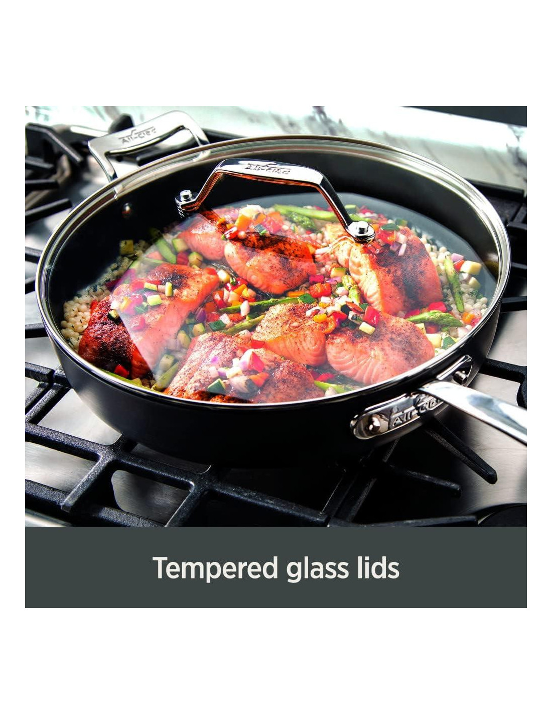 - Tapa de vidrio de 10.5 pulgadas (26.67 cm) para la colección All-Clad Essentials
