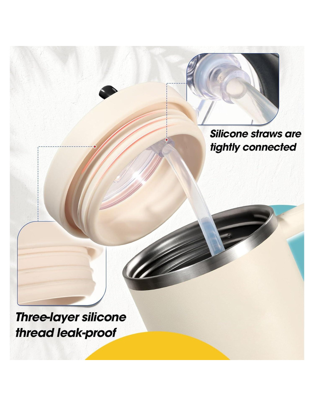 - Tapa de taza de silicona de alta calidad para Stanley: La tapa de paja flip para la taza de 40 oz de Stanley está hecha de silicona de alta calidad, no contiene BPA ni otros materiales no saludables, es ligera y duradera, y se puede lavar en el lavavajillas. La tapa de vaso de 40 oz tiene un anillo de sellado de 3 capas incorporado, que previene derrames mientras mantiene tus bebidas a la temperatura ideal por más tiempo, disfruta de tus bebidas calientes o frías favoritas