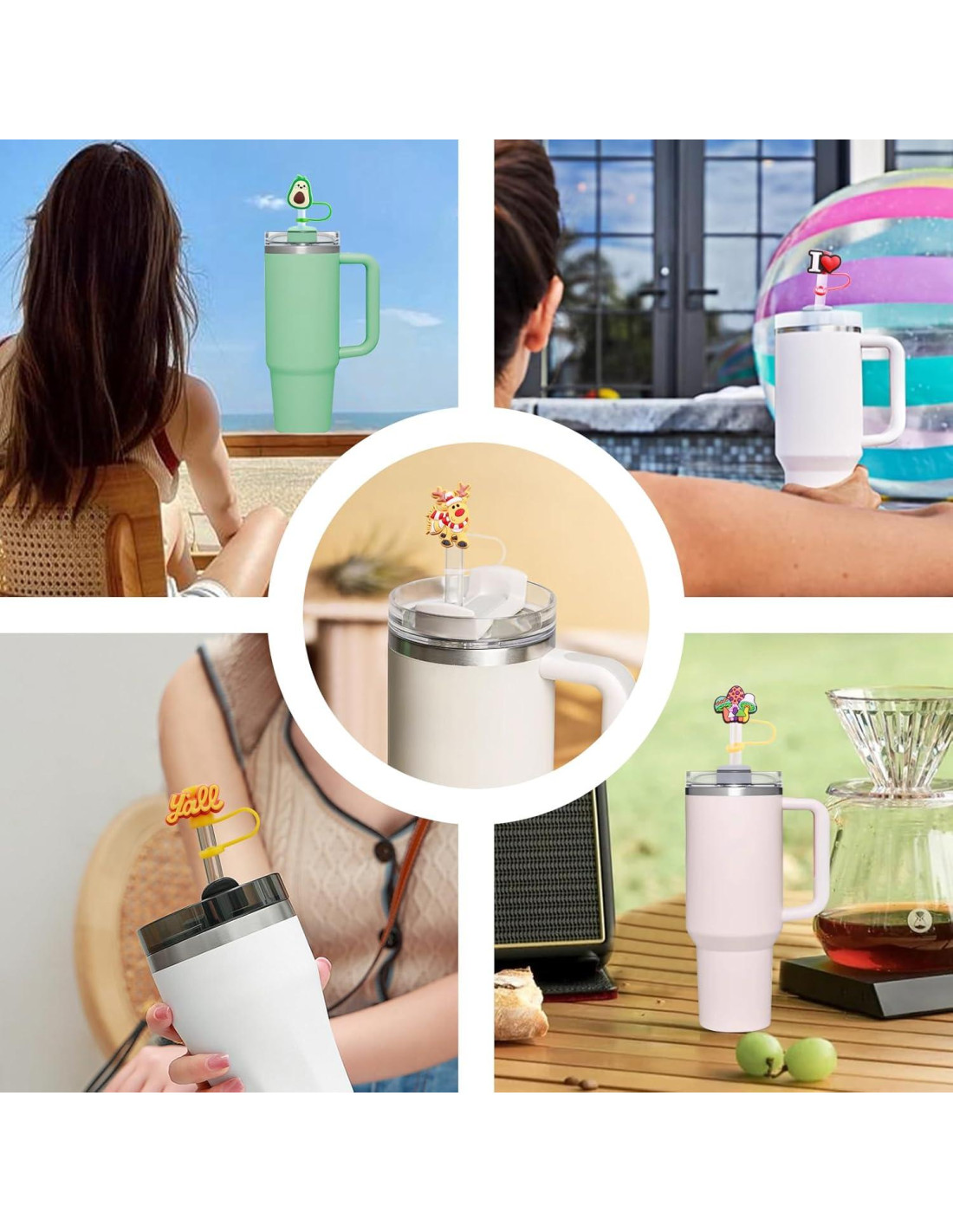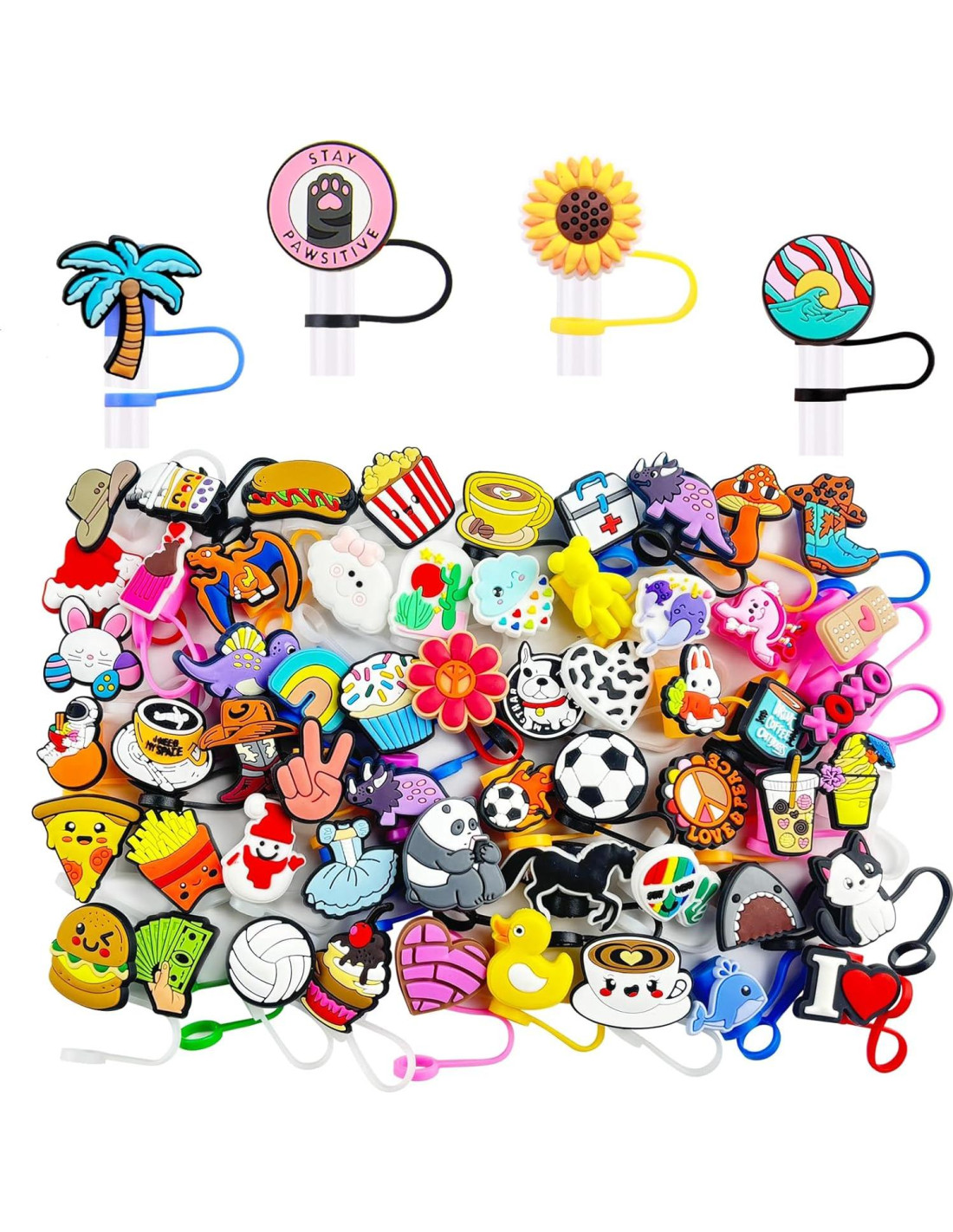 - Tapa de Pajita Aleatoria: El paquete incluye 20 Pcs cubiertas de pajitas aleatorias, tapas de pajita lindas que añaden diversión y estética a la taza.
