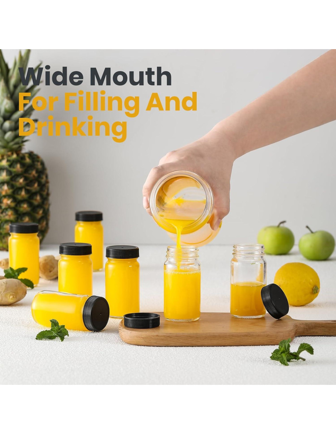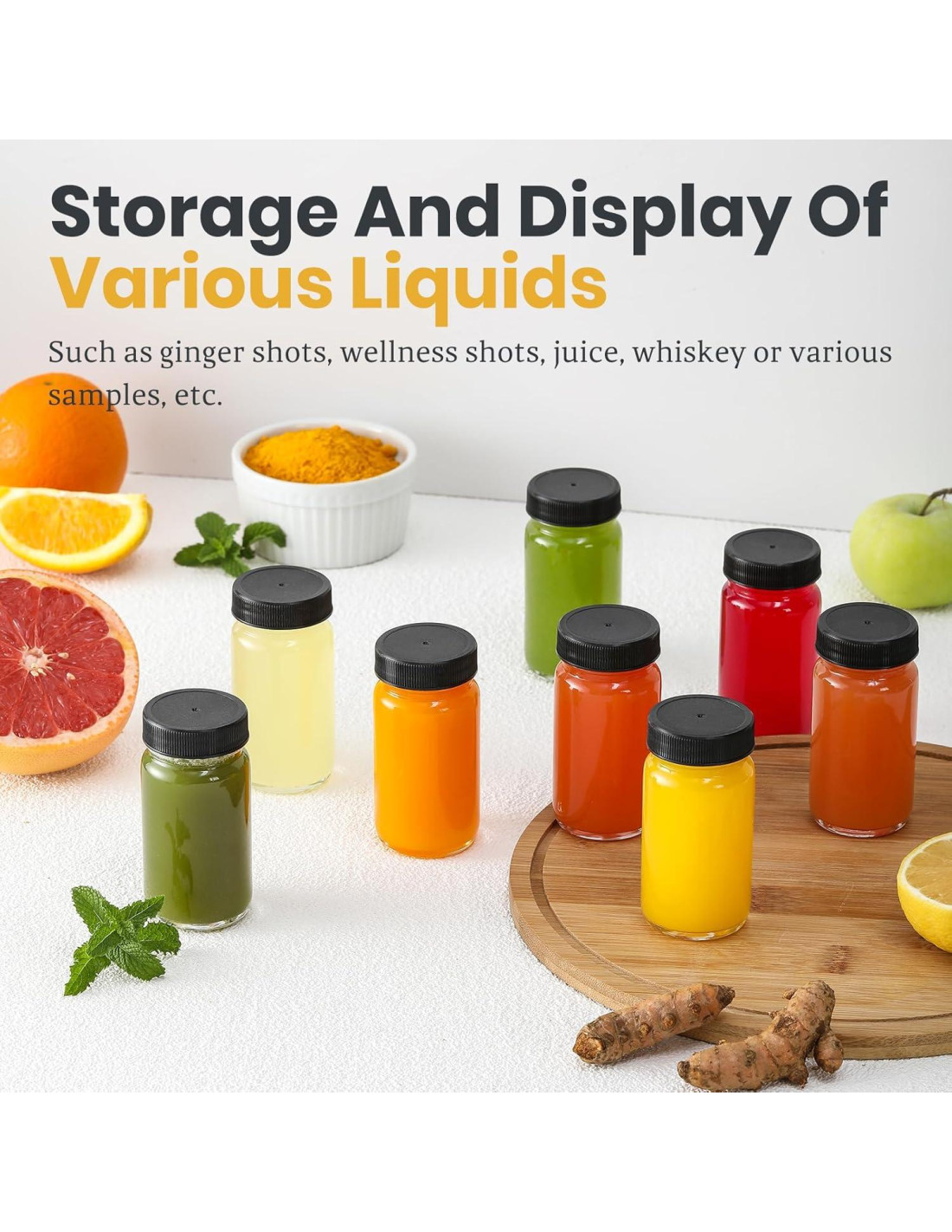 - Botellas portátiles con usos versátiles - Estas botellas de disparo ligeras pero duraderas son perfectas para almacenar jugos, jengibre, bienestar u otros disparos, pociones, aceites, bebidas y muestras, jarabes, aderezos para ensaladas, condimentos y otros tipos de alimentos. Para viajar o para llevar, este tamaño de botella de 2 oz (60 ml) ocupa un espacio mínimo en tu bolsa o refrigerador.