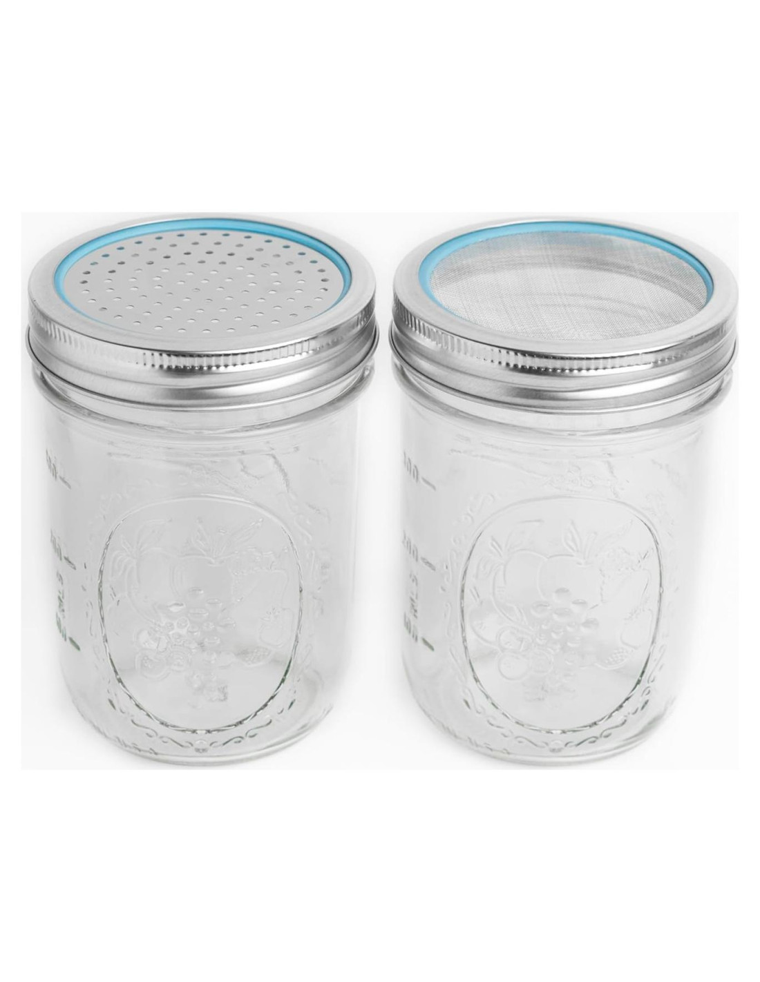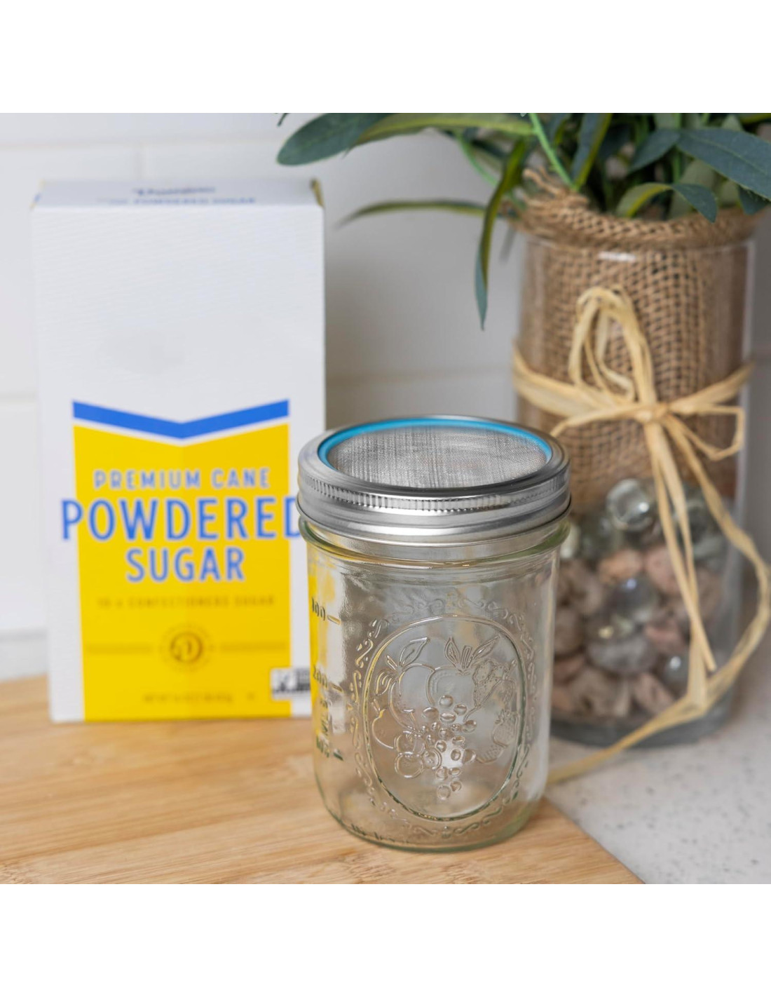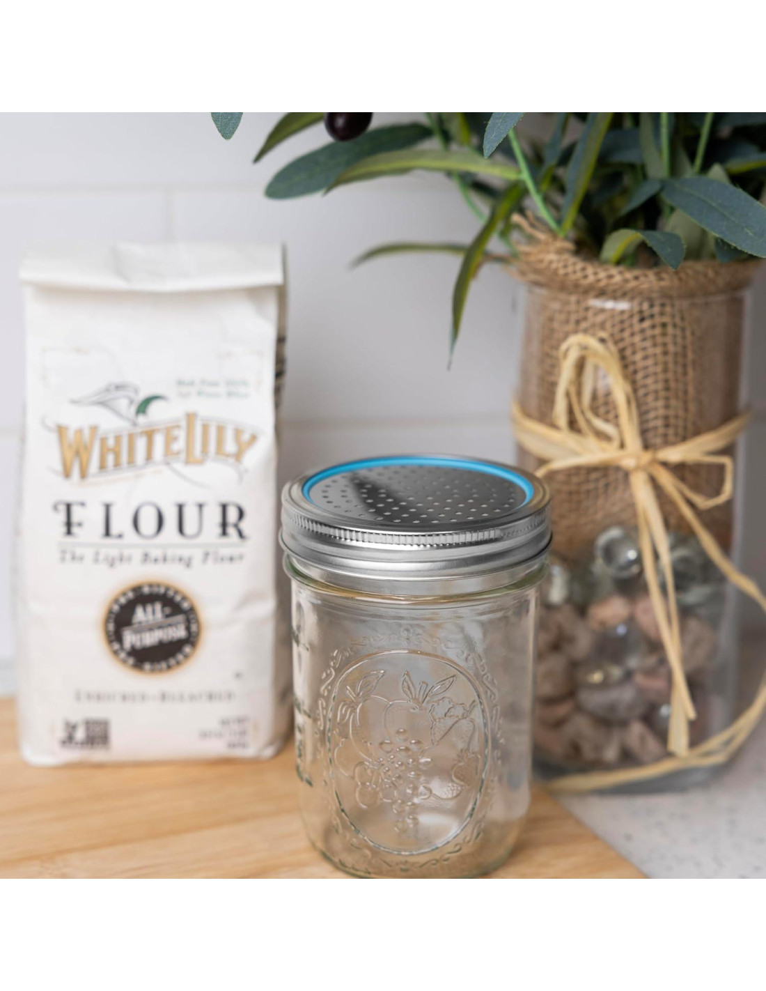 - TAMIZAR HARINA: ¡Tamiza eficientemente la harina con la tapa de tamiz de harina para frascos Mason de boca ancha! Este tamiz de malla de acero inoxidable convierte la harina en un polvo fino que mejora tus horneados y recetas. ¡Solo guarda tu harina en un frasco Mason y tamiza cuando sea necesario!