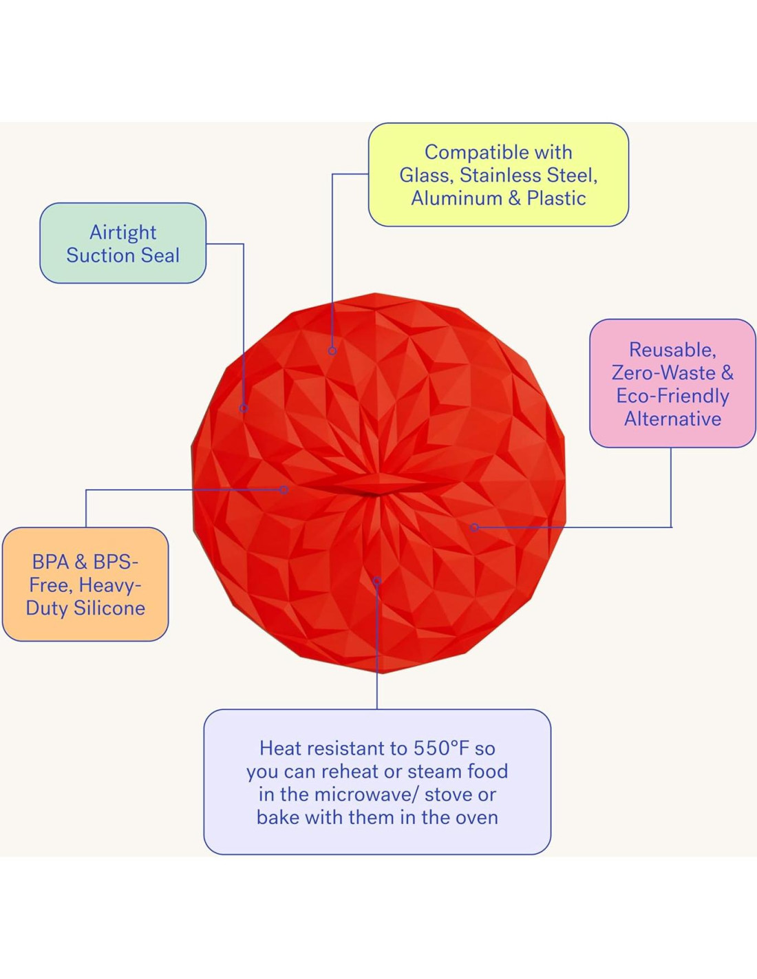 - Maravillas de Sello Hermético: Estas tapas de succión de silicona crean un fuerte sello hermético en superficies lisas como vidrio o acero inoxidable, manteniendo tu comida fresca y evitando olores no deseados