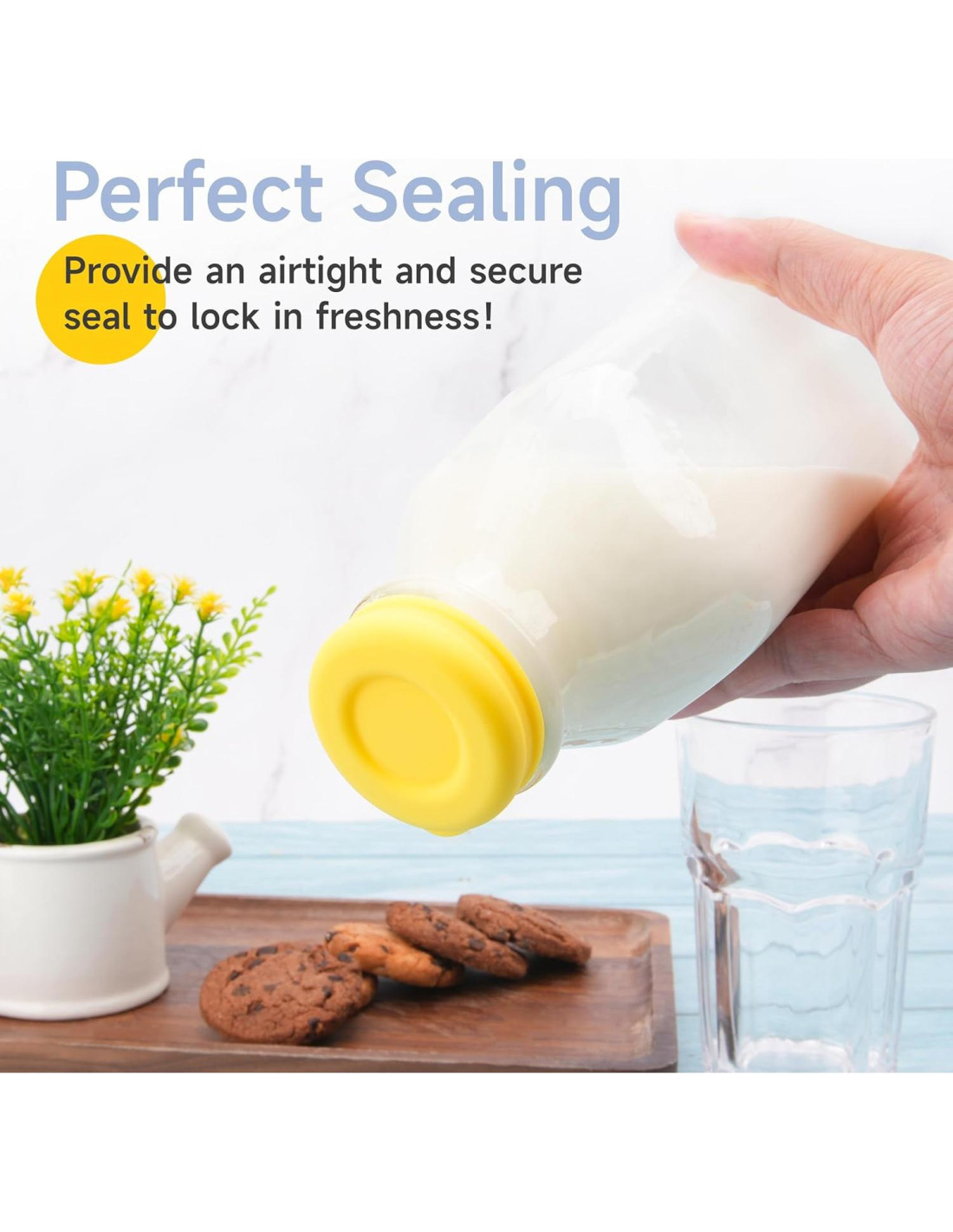 - DISEÑO A PRUEBA DE FILTRACIONES - Nuestras tapas de silicona se ajustan perfectamente a las Botellas de Vidrio de Leche de Stanpac & Libbey & Stock Your Home & The Dairy Shoppe. El ajuste ceñido previene derrames y filtraciones.