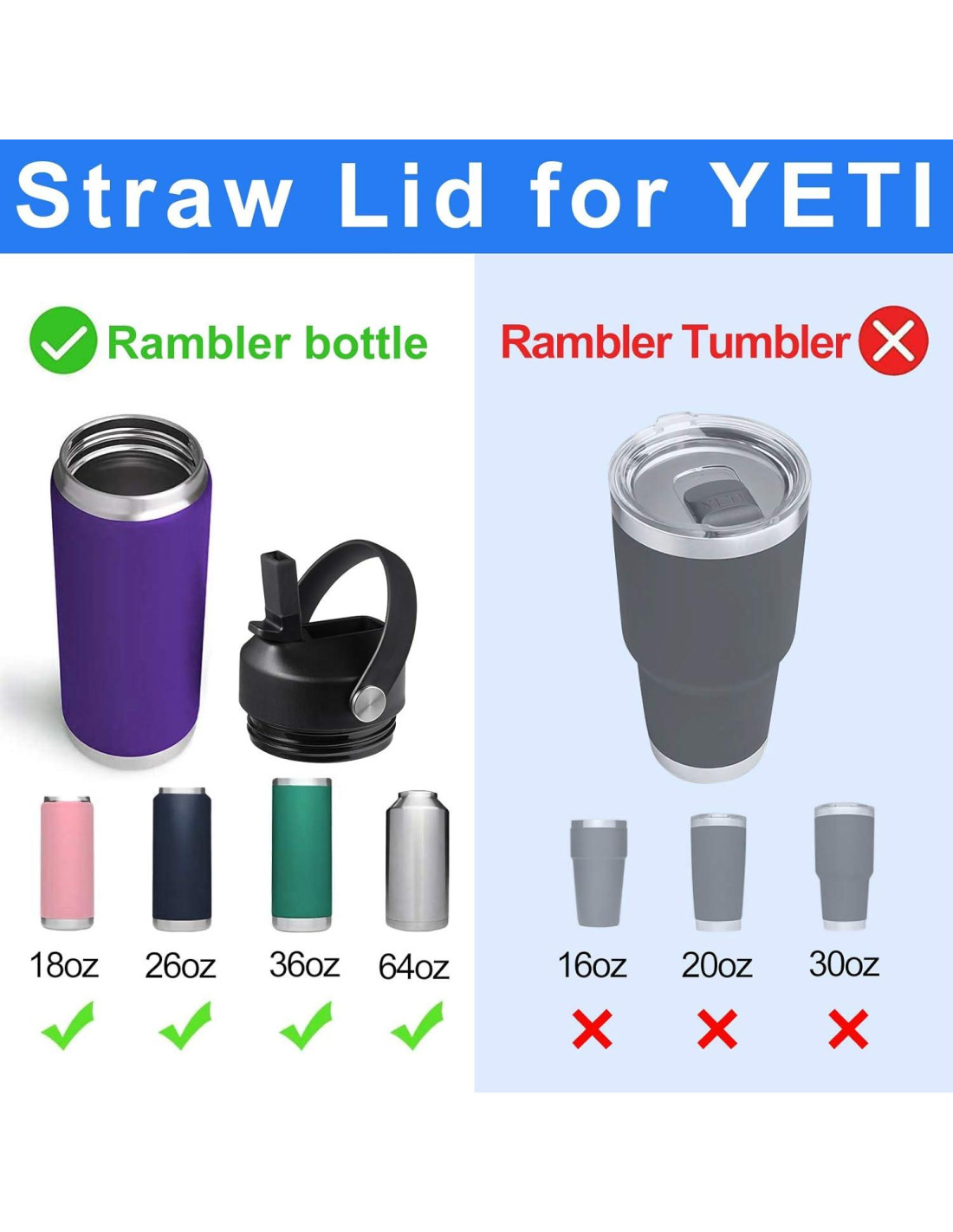 - [COMPATIBLE CON BOTELLA DE AGUA YETI RAMBLER] Tapa para YETI Rambler Jr 12 oz 18 oz, 26 oz 36 oz 64 oz. El mango suave y flexible es cómodo para llevar tu botella de agua Yeti Rambler a cualquier lugar. La tapa de paja es fácil de beber agua de la botella Yeti rambler sin desenroscar la parte superior. NO es compatible con Ozark Trail, NO es para ningún vaso.