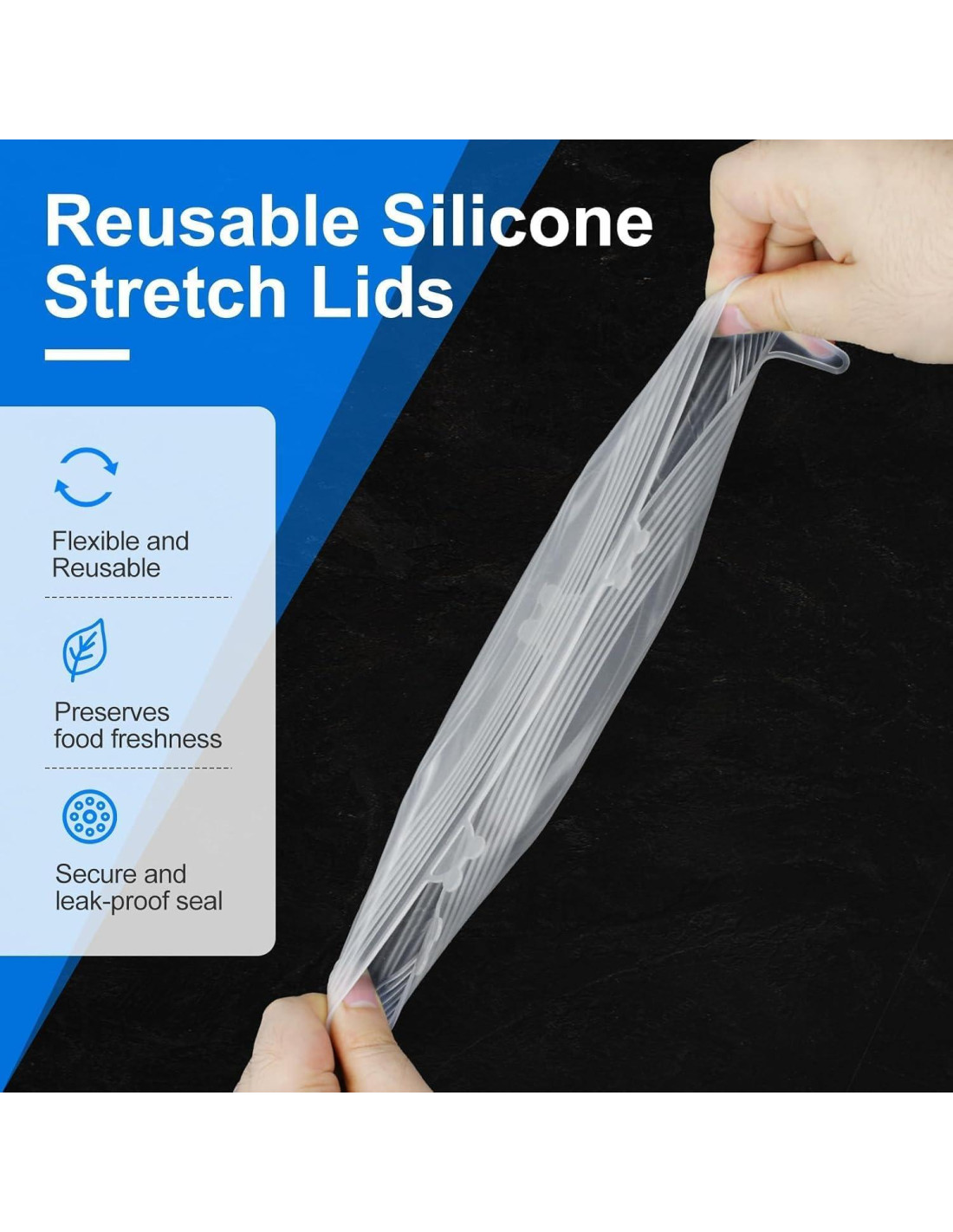 - AHORRO DE ESPACIO Y FÁCIL DE LIMPIAR: Las tapas de silicona para alimentos ahorran más espacio en el refrigerador y almacenan más alimentos. Ayuda a mantener una variedad de alimentos frescos y previene derrames y salpicaduras. El material especial de silicona hace que la tapa sea fácil de limpiar.