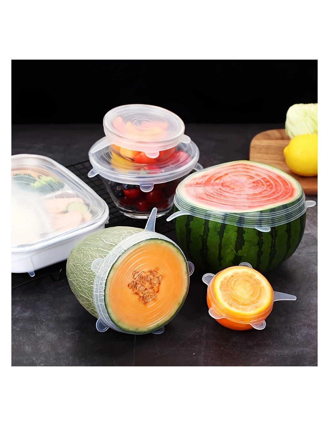 - TAMAÑOS VERSÁTILES: El juego incluye 6 tapas de silicona estirables en varios tamaños para ajustarse a diferentes contenedores y frutas cortadas, que van desde 6.35 a 20.32 centímetros de diámetro
