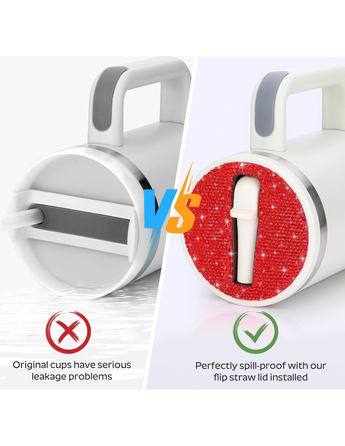 - [Diseño a Prueba de Fugas] - Nuestra innovadora tapa de paja flip está especialmente diseñada para prevenir cualquier fuga de líquido. Una vez sellada, garantiza un rendimiento 100% a prueba de fugas. Nunca más tendrás que preocuparte por derrames de líquido