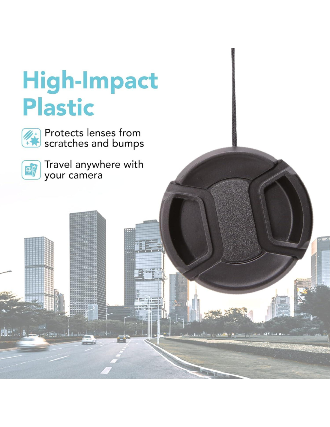 - RESISTENTE. Hecho de plástico duradero, este accesorio de tapa de lente puede soportar impactos altos, rayos del sol y golpes.