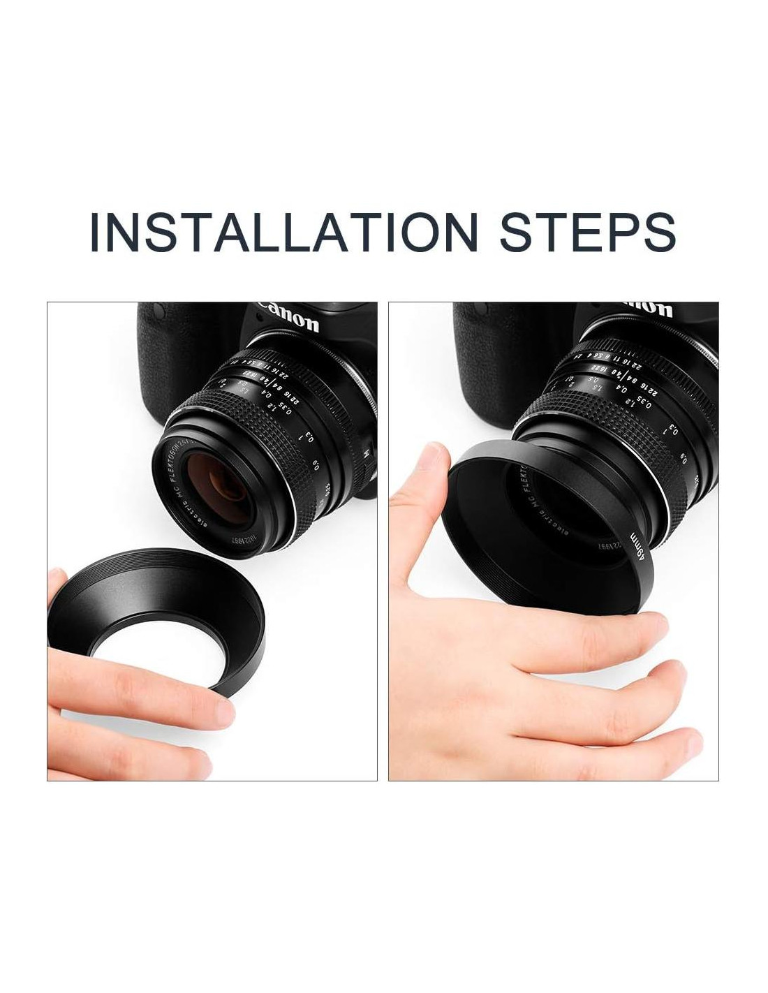 - [Material] : Esta capucha de lente está construida de metal de aluminio sólido y ligero con una superficie negra lisa de alta calidad.