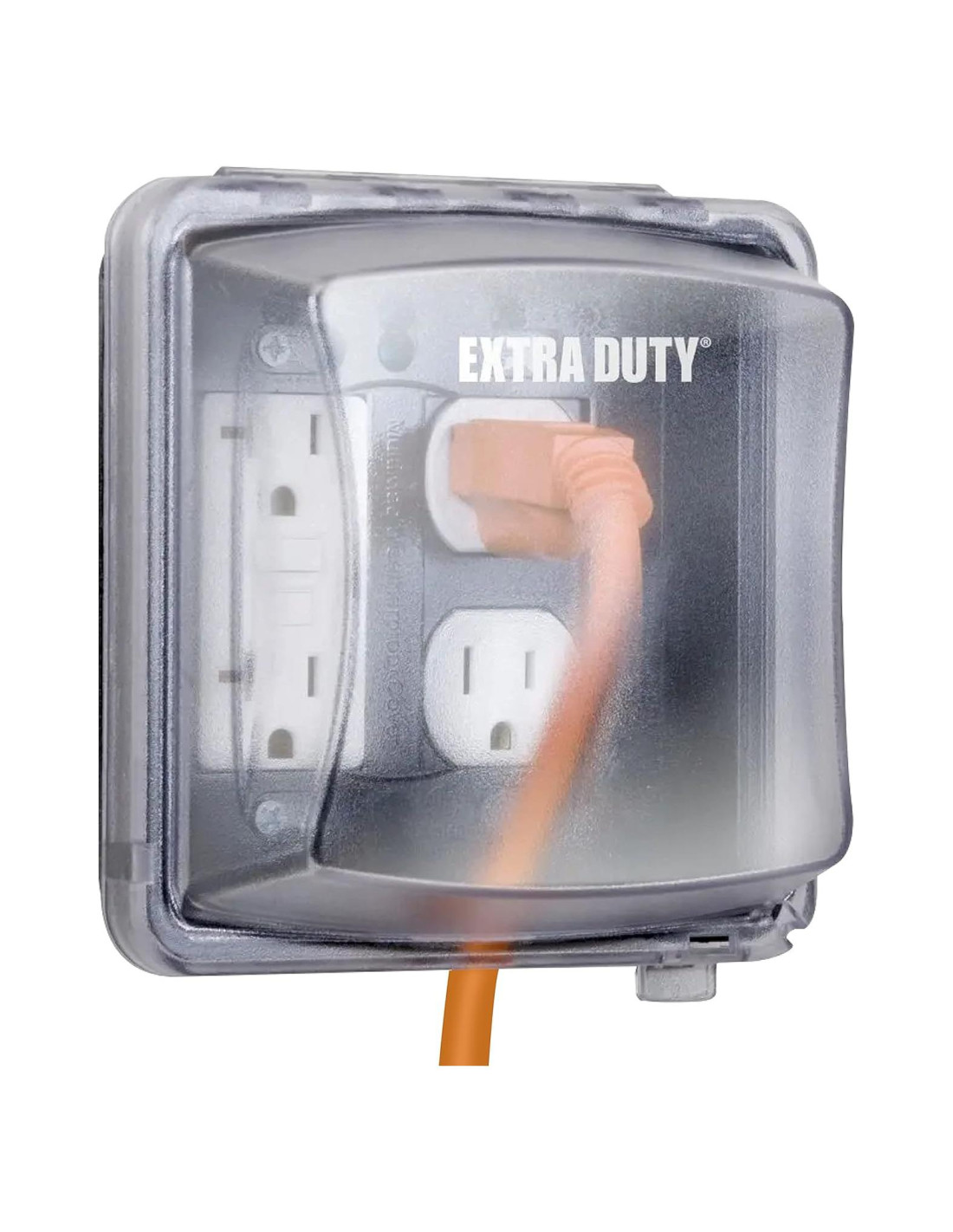 - CLASIFICADO DE USO EXTRA: Obtén la máxima resistencia y protección. Nuestra cubierta de enchufe eléctrico a prueba de climas de 2-Gang de uso extra de 2.75 pulgadas (6.99 cm) para mejoras en el hogar está clasificada de uso extra y listada por cULus para ubicaciones húmedas y mojadas.