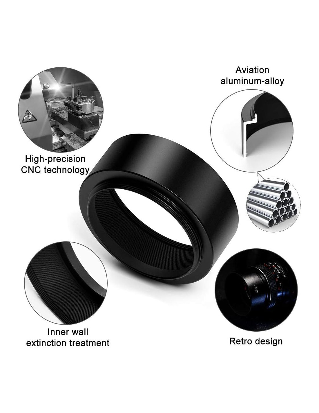 - [Función] : El gorro de lente estándar con rosca puede prevenir el destello de lente causado por luz externa y protege contra golpes o impactos inesperados, sin viñeteo.