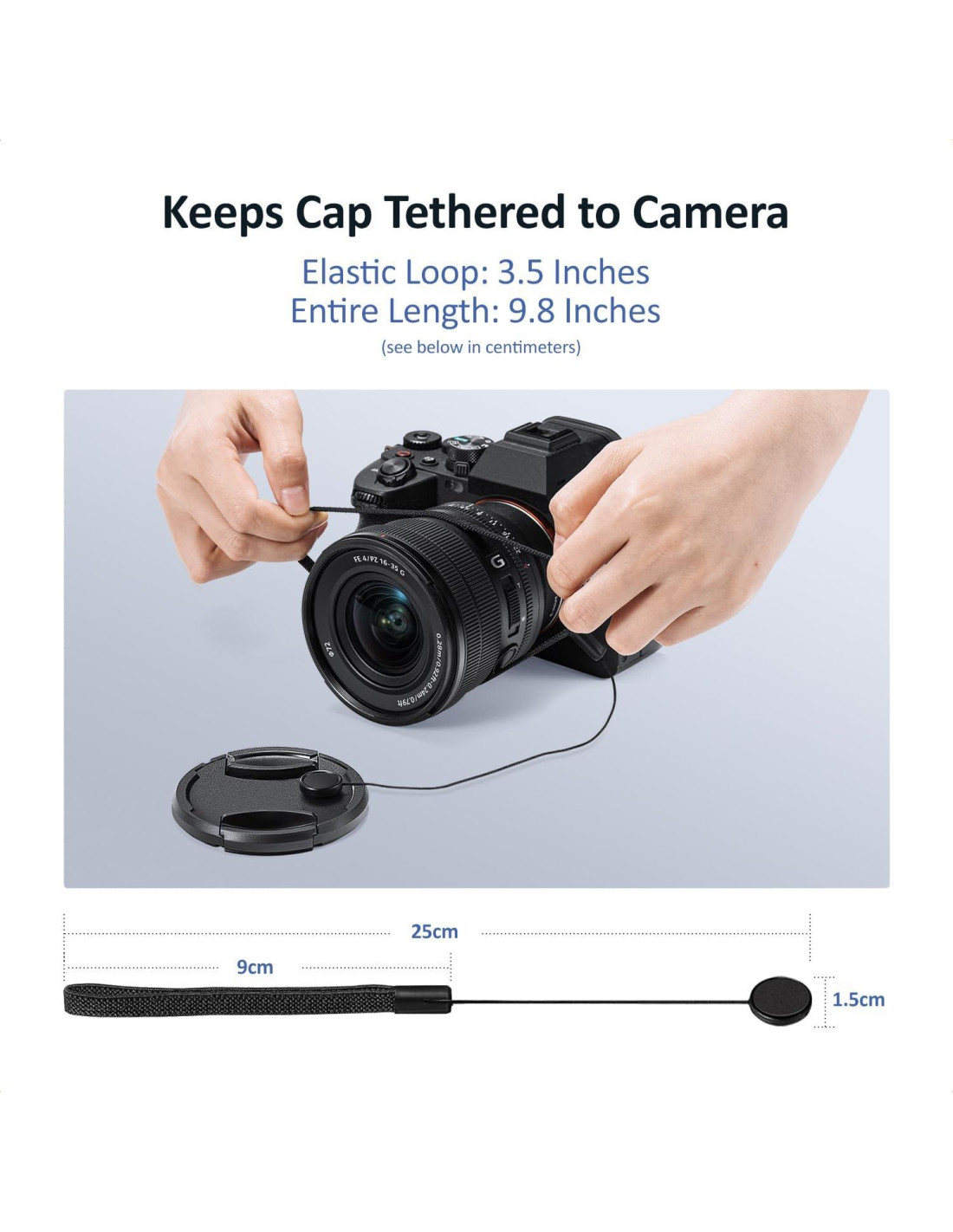 - Soporte para tapa para mayor seguridad: Esta tapa de lente viene con un soporte para tapa, un accesorio útil que asegura que nunca más perderás tu tapa de lente. La duradera cuerda elástica se sujeta fácilmente al cuerpo de tu cámara o correa, evitando que la tapa se pierda o se caiga durante las sesiones de fotos.
