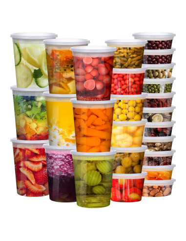 - PREPARACIÓN DE COMIDAS Y ALMACENAMIENTO DE ALIMENTOS - Nuestros contenedores deli con tapas son excelentes para la preparación de comidas. Además, estos contenedores de plástico son perfectos para almacenar sopas, aderezos, ensaladas, frutas y sobras. Estos contenedores de sopa son aptos para microondas, congelador y lavavajillas.