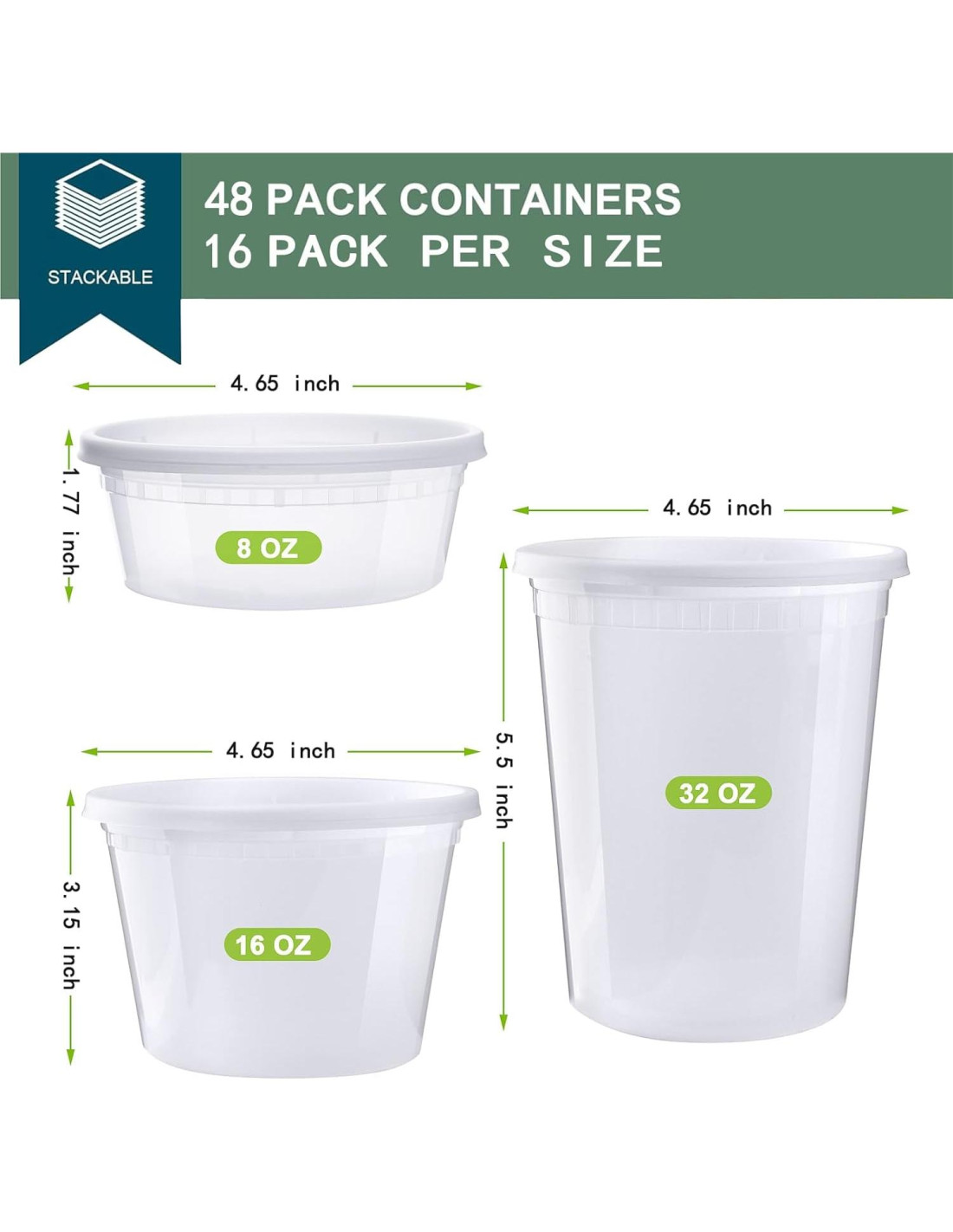 - QUÉ OBTENDRÁS - Nuestros juegos incluyen 48 contenedores de alimentos de plástico, son de calidad premium y reutilizables. Estos contenedores de alimentos de plástico con tapas tienen muchos usos, incluyendo la organización de artículos en el hogar. ¡Compra y disfrútalos ahora!