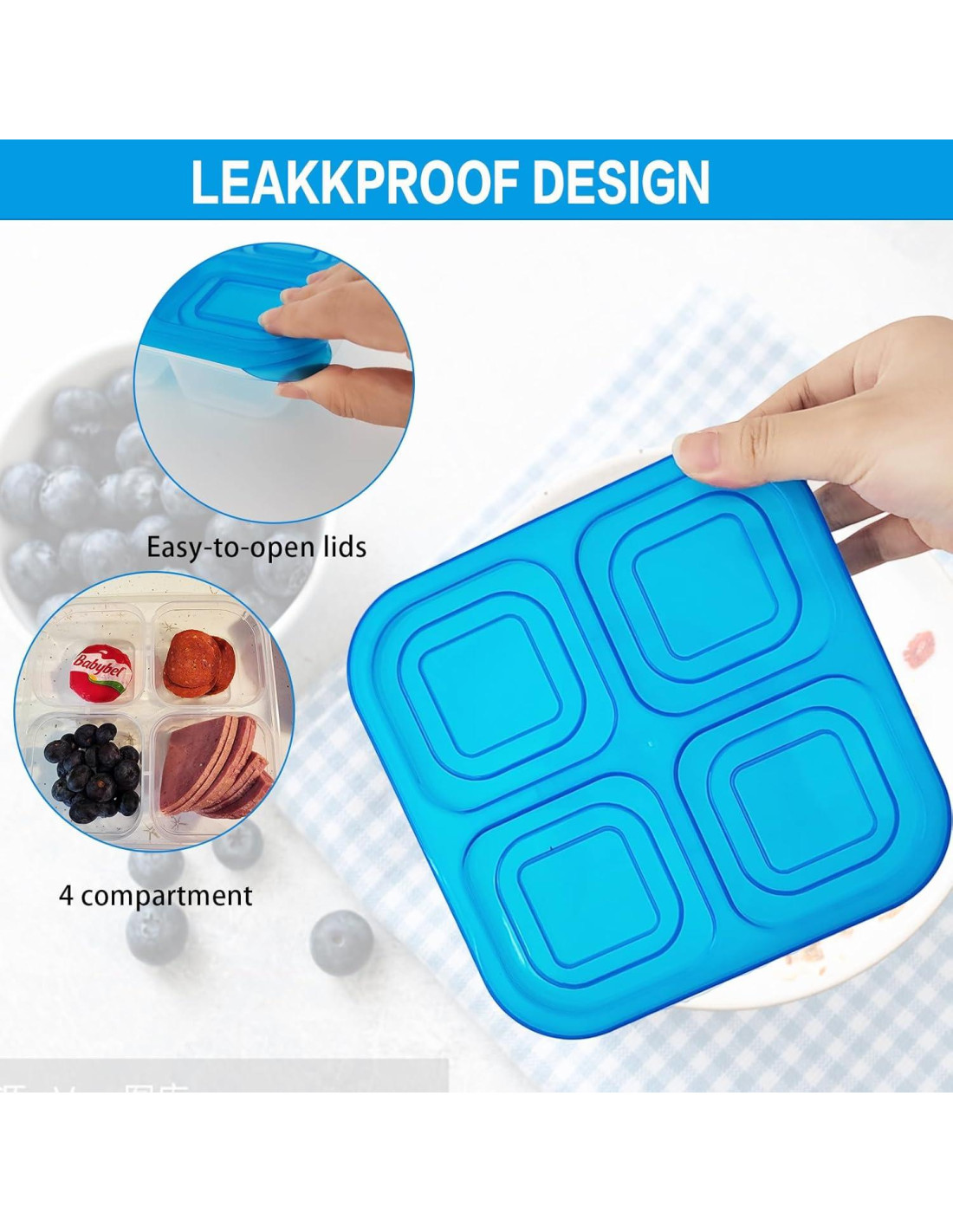 Con colores pastel de verde, azul, rosa, púrpura y amarillo, material de calidad y diseños funcionales, nuestros contenedores de almacenamiento de comida divididos con tapas pueden ayudarte a llevar varios alimentos a la vez sin preocuparte por mezclarlos y afectar el sabor de la deliciosa comida. Las tapas translúcidas pueden ayudarte a identificar la comida interior. Contenedores de snack divididos hechos con materiales aptos para alimentos, son seguros para microondas, lavavajillas y congelador. Las cajas de snack bento son convenientes de usar, se limpian fácilmente y se organizan rápidamente. (Nota: No poner las tapas en el lavavajillas o microondas) 4 compartimentos perfectamente porcionados hacen que sea fácil empacar una variedad de snacks para cualquier tamaño de apetito, desde niños hasta adultos. Los contenedores de almuerzo para niños están diseñados para ser muy livianos y apilables uno sobre otro para apilar en refrigeradores y gabinetes sin ocupar demasiado espacio, también puedes ponerlos en una mochila o bolsa de almuerzo fácilmente para comidas sobre la marcha, es una gran opción para adultos y niños para ir a trabajar, a la escuela, o viajar.