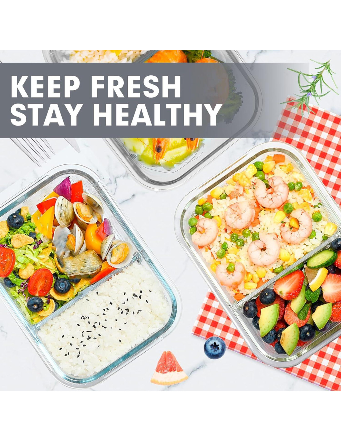 - MATERIAL DE VIDRIO DE ALTA CALIDAD: Los contenedores de preparación de comidas de vidrio están hechos de vidrio de borosilicato de alta calidad, para horno, microondas, lavavajillas y congelador. Más fuertes que los contenedores de almacenamiento de alimentos de vidrio más baratos, los alimentos se pueden almacenar en contenedores de vidrio directamente después de cocinar. Los contenedores son versátiles para satisfacer tus necesidades diarias de almacenamiento de alimentos, perfectos para preparar comidas en casa o lo que necesites para la ocasión.