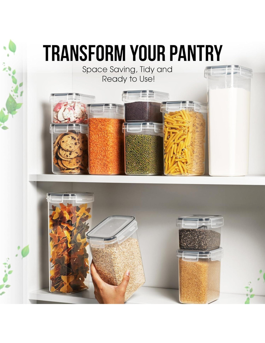 - Estos contenedores de almacenamiento de cereales son perfectos para organizadores de despensa. El set incluye contenedores para almacenamiento de cocina, ofreciendo una solución ideal para organizar tu cocina, despensa e incluso bocadillos con contenedores herméticos para una frescura duradera.