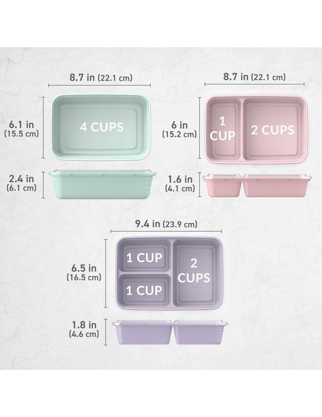 - El Juego de Preparación de Comidas Favorito de Todos: ¡Obtén todo lo que necesitas para preparar comidas en un solo conjunto conveniente! Este duradero y reutilizable juego de preparación de comidas de 60 piezas viene con 10 bandejas de un compartimento, 10 bandejas de dos compartimentos y 10 bandejas de tres compartimentos, todas con sus propias tapas ajustadas. Prepara desayuno, almuerzo y cena para toda la semana o para varios miembros de tu familia con este conjunto completo.