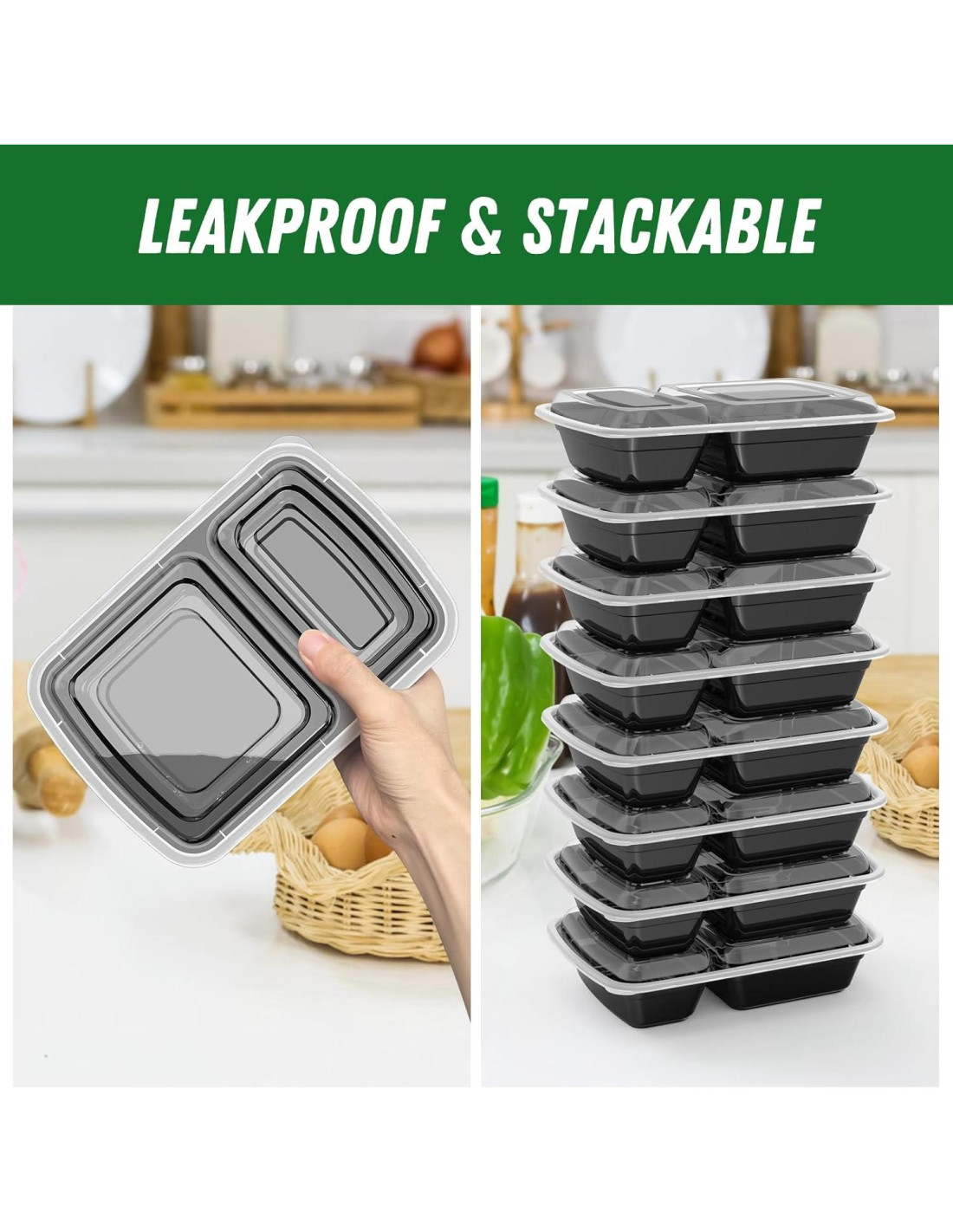 - Componentes incluidos: Paquete de 50 contenedores de preparación de comidas de 28 oz con tapas de 2 compartimentos, Negro