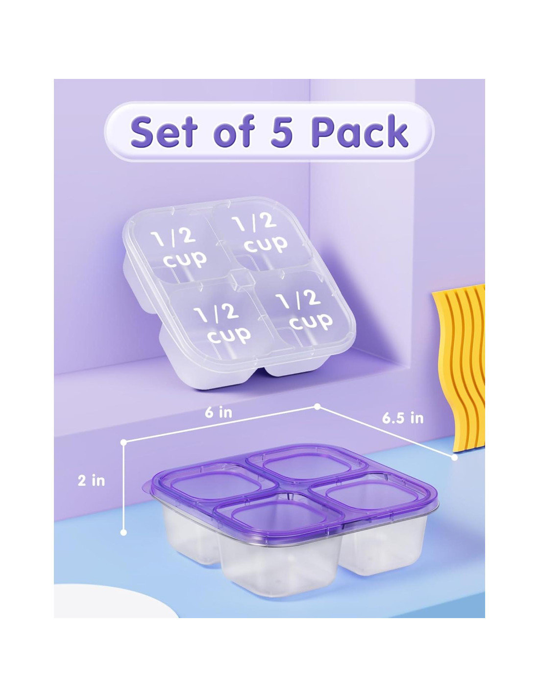 - [Contenedores Divididos] Contenedores de snack de 4 compartimentos, cada uno con capacidad de 1/2 taza, según tus hábitos, separa todo tipo de comida, un set contiene 5 colores, puedes elegir un color diferente cada día en la jornada laboral.
