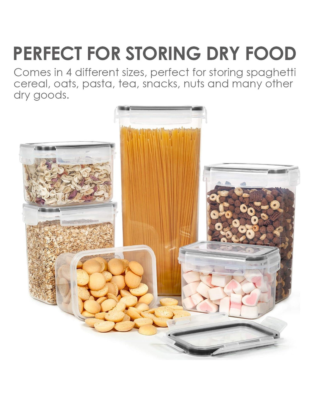 - Contenedores Herméticos Mantienen los Alimentos Frescos----Las tapas con bloqueo lateral y junta de silicona hacen que estos contenedores de almacenamiento sean herméticos, y la parte superior se abre fácilmente. El sistema de almacenamiento hermético siempre mantendrá tus alimentos secos y frescos. Todos tienen las mismas tapas, lo que facilita lavarlas, secarlas y reutilizarlas con facilidad.