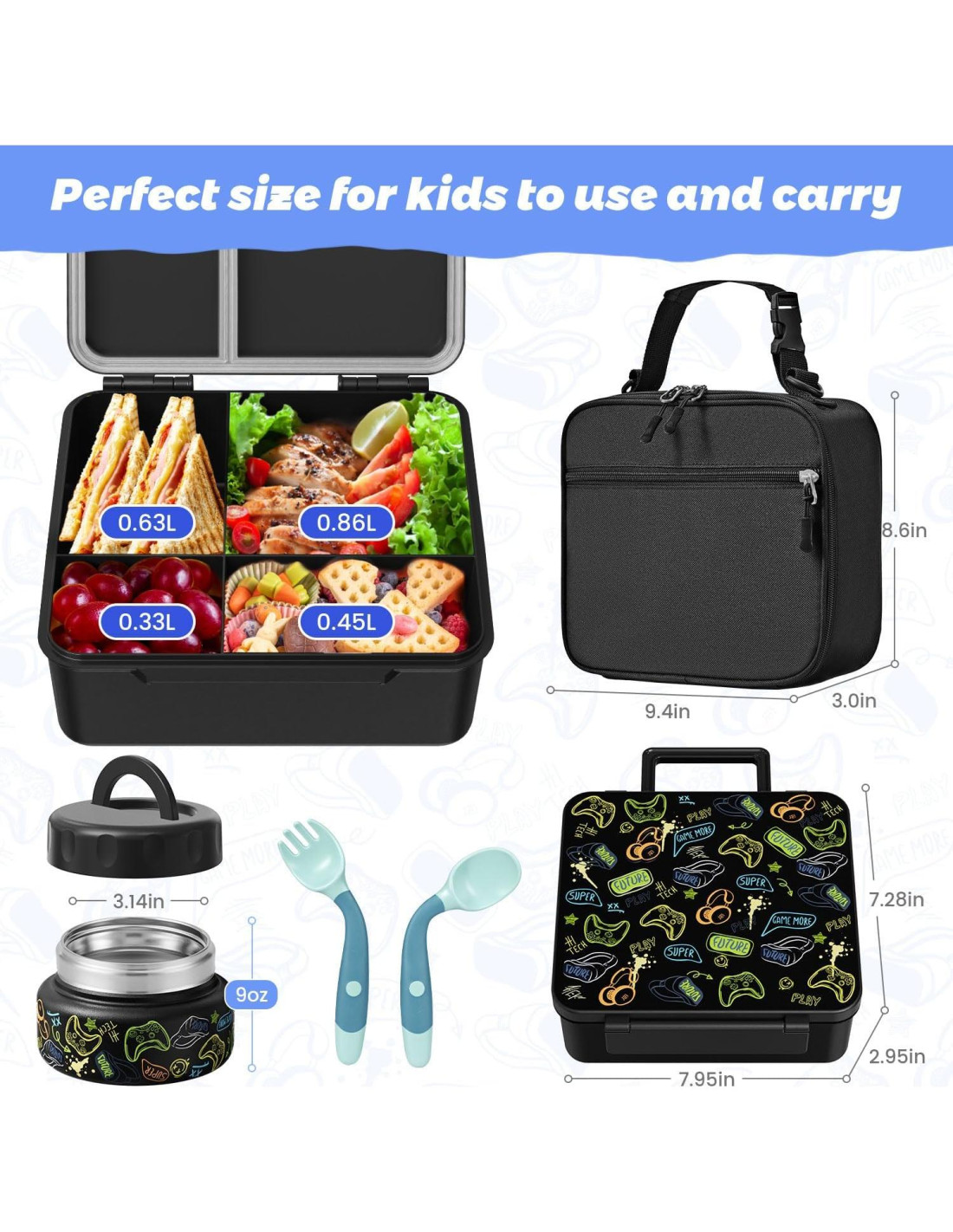 - DISEÑO AMIGABLE PARA NIÑOS Y PADRES: Nuestra caja bento con termo está hecha de materiales de alta calidad, aptos para alimentos, libres de BPA, no tóxicos, resistentes a manchas y completamente seguros para los niños. Cuenta con cierres amigables para niños y un tapón de orificio de aire incorporado para ventilación. El tarro de comida removible, el divisor, la tapa, la bandeja, los utensilios y el contenedor de salsa son aptos para lavavajillas en la parte superior (bajo 80C), aptos para congelador, y la bandeja de comida es apta para microondas, perfecta para padres ocupados que no tienen tiempo para lavar a mano.