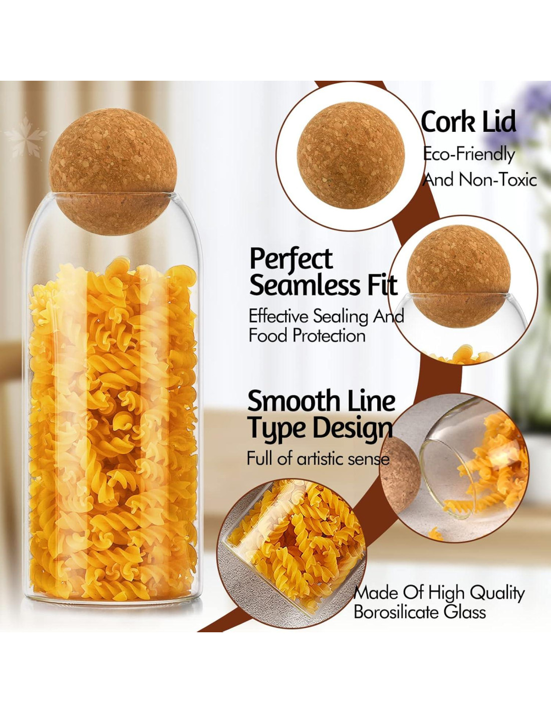 - Buena función de sellado: La botella de almacenamiento con una tapa de corcho flexible mantiene efectivamente el aire y la humedad fuera, creando un ambiente a prueba de humedad para mantener tus alimentos limpios y frescos.