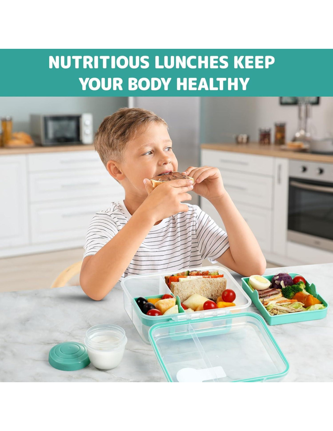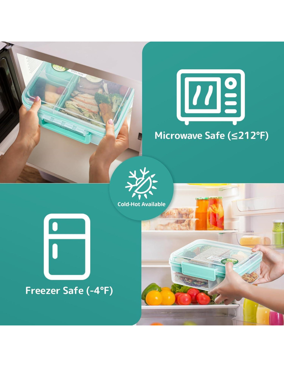 Estos contenedores de almacenamiento de alimentos divididos ANDMOON Bento Create To Go con tapas hacen que empacar almuerzos escolares, refrigerios para llevar y guardar sobras sea fácil y conveniente. Los divisores removibles se pueden organizar en más de 20 configuraciones diferentes de caja bento, caja de almuerzo y contenedor de preparación de alimentos, lo que lo convierte en nuestra solución de almacenamiento de alimentos más versátil, y el contenedor redondo de 5.07 oz. para yogur con tapa de rosca es perfecto para porciones más pequeñas de salsas, aderezos y más.