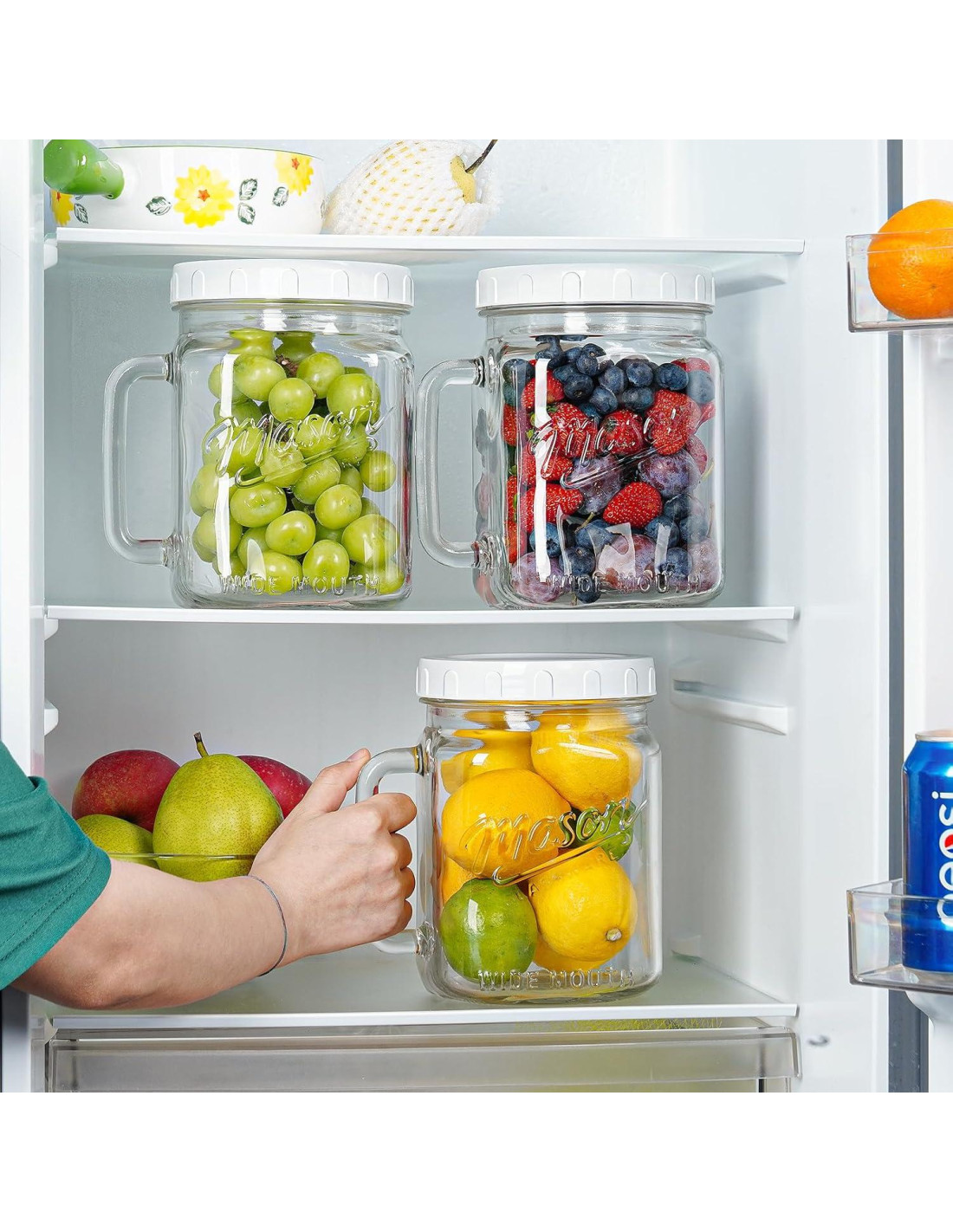 - Boca ancha para fácil acceso - Con una generosa boca ancha de 4.3 pulgadas (11 cm), este tarro de mason con asa es perfecto para todas sus necesidades de almacenamiento. Ya sea que esté tomando un puñado de bocadillos o lavándolo, la amplia abertura le ahorra tiempo y esfuerzo