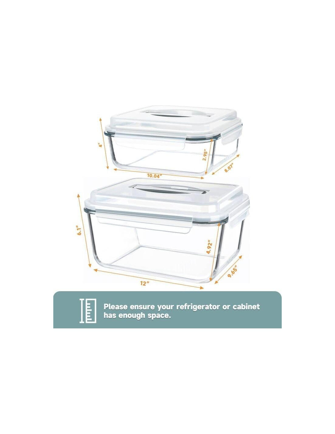 - Capacidad Generosa: Este conjunto incluye dos contenedores de almacenamiento de alimentos de vidrio extra grandes (203oz (6.0L) & 74oz (2.2L)), perfectos para almacenar una variedad de comidas, bocadillos, verduras, frutas o sobras, asegurando que tenga suficiente espacio para sus necesidades culinarias.