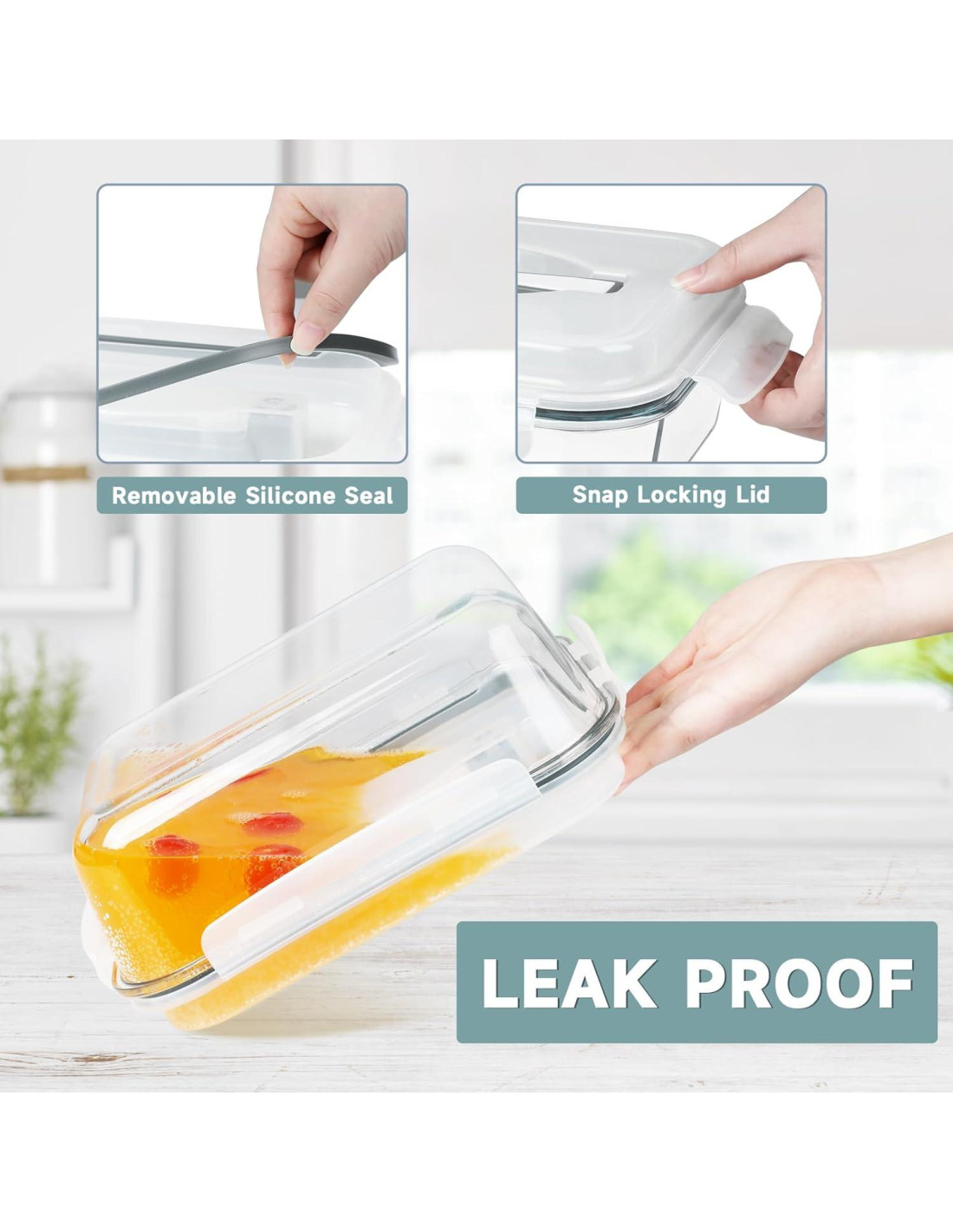 - Diseño a Prueba de Fugas: Equipados con tapas de bloqueo a presión sin BPA que cuentan con cómodas asas de transporte, estos contenedores de vidrio con tapas previenen fugas y derrames. Las tapas de plástico también crean un sello hermético, manteniendo los alimentos frescos por más tiempo.