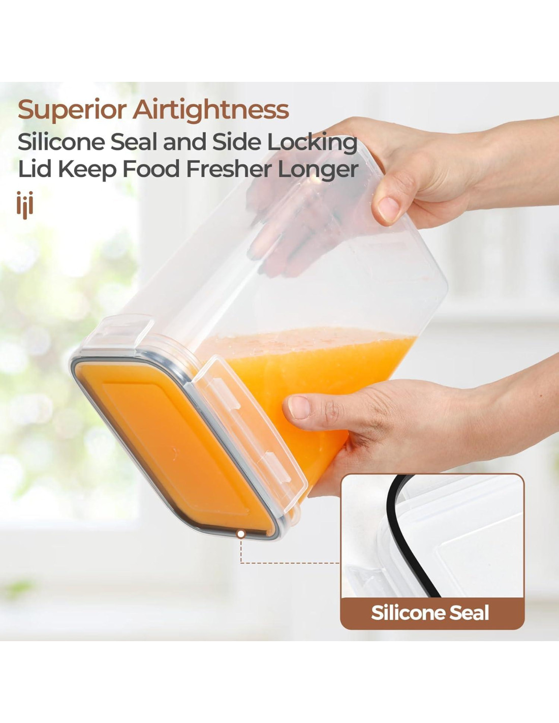 - Mantenga Su Comida Fresca: Nuestros contenedores de almacenamiento de despensa herméticos tienen tapas de bloqueo lateral fuertes para asegurar la frescura y mantener a las hormigas fuera; El excelente sello puede hacer que las tapas estén firmes inicialmente, presione hacia abajo con una mano mientras cierra con la otra para un fácil cierre