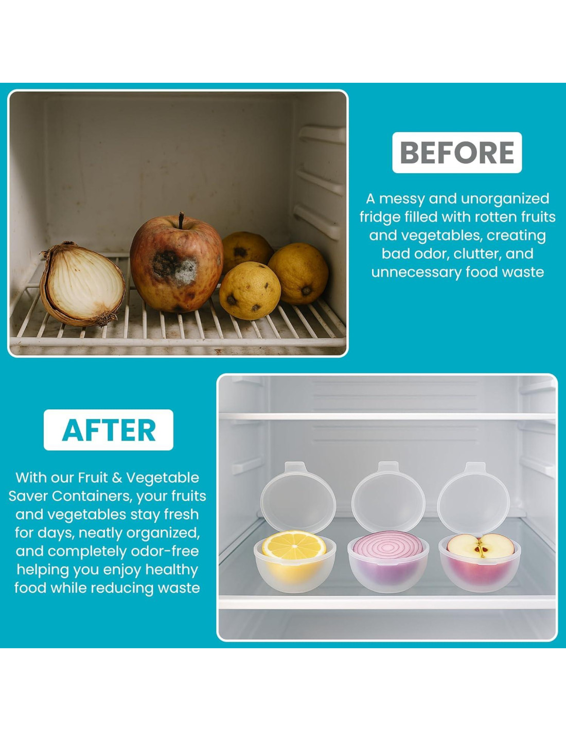 - Preserva la Frescura de los Productos Cortados: Extiende la vida de frutas y verduras partidas como cebollas, tomates, manzanas o limones con estos ahorradores en forma de tazón de 10.8x5.7 cm, reduciendo la deshidratación y el desperdicio de alimentos. Perfectos para almacenamiento en el refrigerador, estos contenedores sellan la humedad, ayudándote a ahorrar en compras mientras mantienes los productos frescos y listos para usar.